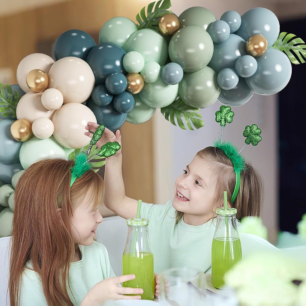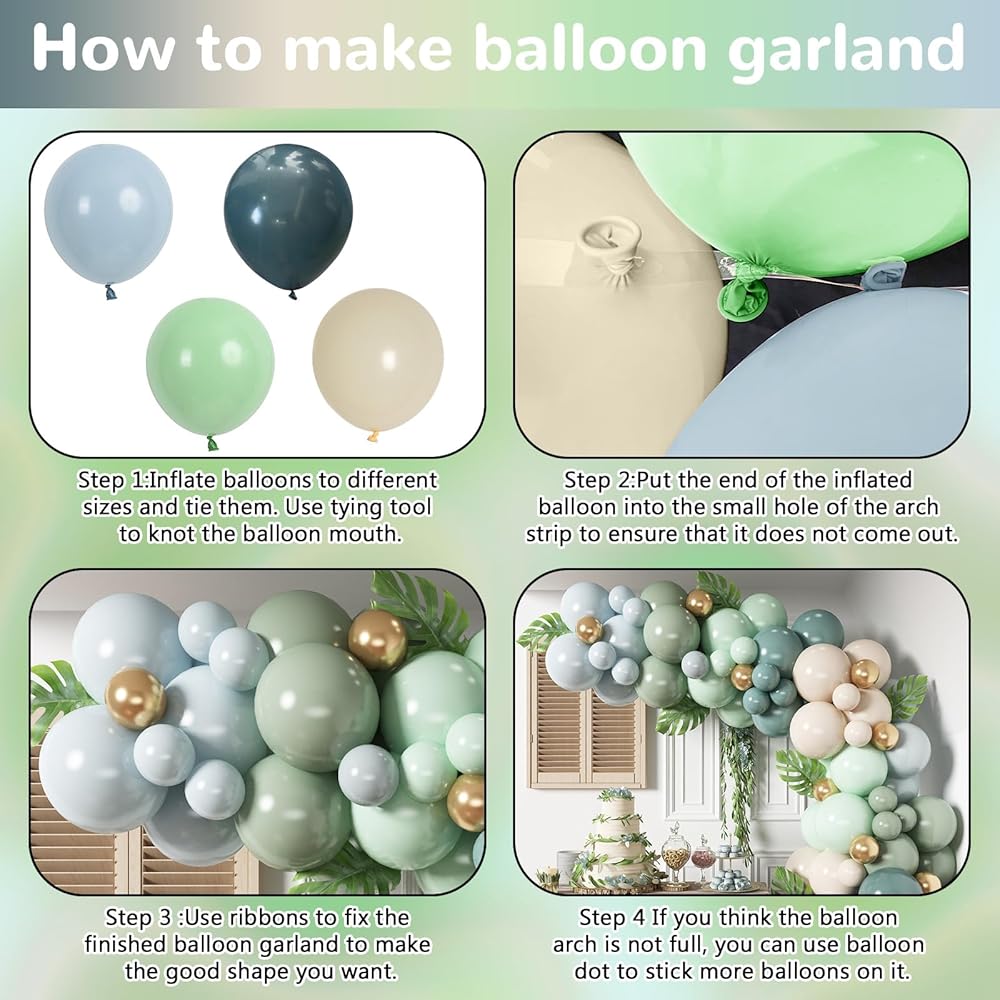 Dusty Blue Sage Green Balloon Arch Kit Slate Fog Blue Pastel Green White Sand Beige Gold Balloons Garland for Jungle Safari Birthday Baby Shower Wedding Party Decorations