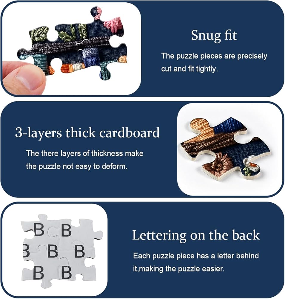 TIP: This Puzzles for Adults 1000 Pieces borrows the artistic style of embroidery, presenting a delicate visual effect, but it is not a real embroidery technique