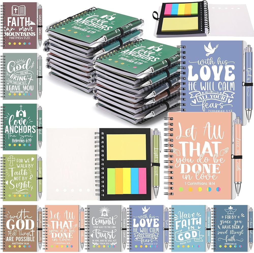 20 Sets Prayer Journal Christian Aesthetic Notebook Gifts Bulk Church Inspirational Scripture Religious Spiral Bible Verse Notebook with Sticky Notes Bamboo Ballpoint Pen Notepads for Church