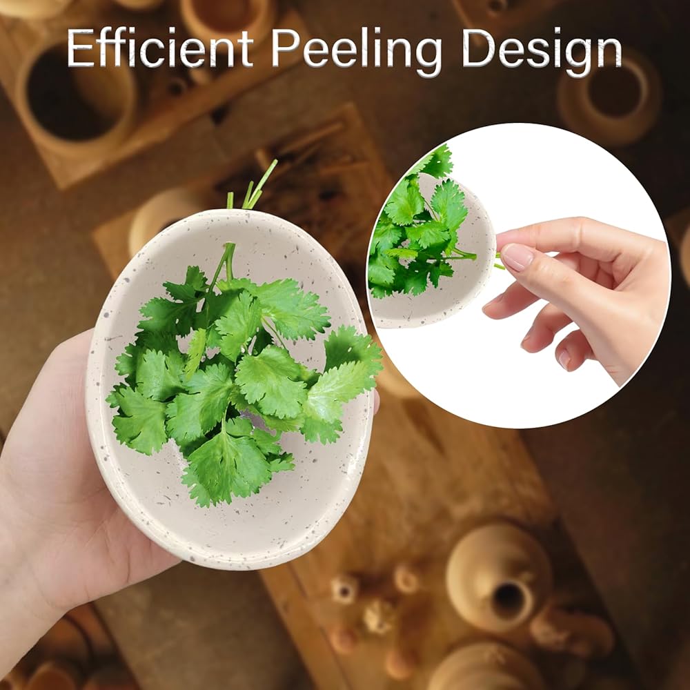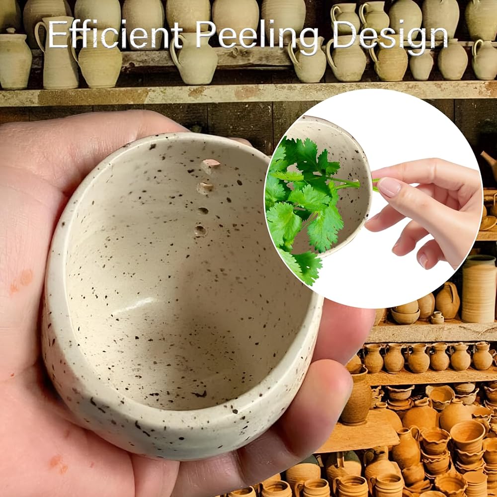AGLOO Handmade Pottery Herb Stripper Bowl - Ceramic Herb Peeler & Stripper Tool for Kitchen, BBQ, and Picnics (white)