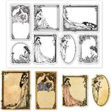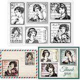 Retro Sewing Theme: The elements of transparent stamps include buttons, pins, thread balls, mannequins, etc., as well as elegant classical women and retro text backgrounds. These pattern designs are classic and elegant, making them perfect for printing on greeting card covers or postcards.