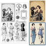 GLOBLELAND Vintage Sewing Background Clear Stamps for DIY Scrapbooking Elegant Lady Sewing Machine Model Clear Stamp Seals for Journals Decorative Cards Making Photo Album