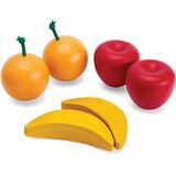 The fruit can be "cut" in two using the wooden knife. Children enjoy hearing the rip of the Velcro holding the halves together.