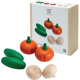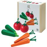 PlanToys® Wooden Fruits & Vegetables Cutting Set | Montessori-Inspired Play Food for Toddlers | Pretend Play Kitchen Toy with Knife and Tray | Educational Fine Motor Toy