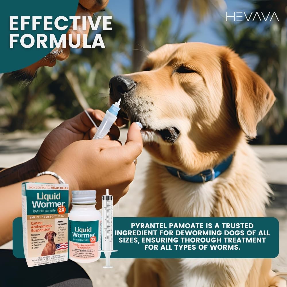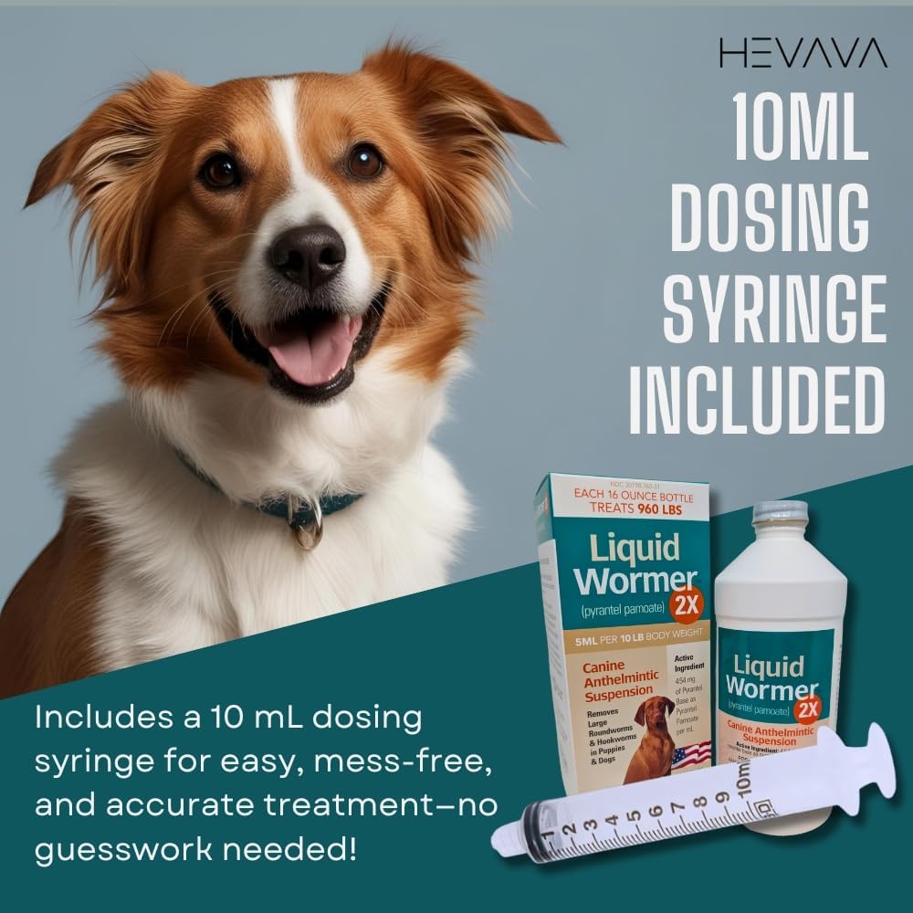 Liquid Wormer 2X is a veterinarian-trusted antiparasitic treatment that provides broad-spectrum deworming for dogs. Its active ingredient, pyrantel pamoate, is effective against hookworms and roundworms, two of the most common intestinal parasites in dogs. Unlike other dog dewormer liquid products, this package includes a 10 mL dosing syringe for precise measurement—ideal for small dog dewormer liquid, puppies, and accurate dosage in medium and large dogs too. ✔ Safe for puppies 2 weeks and older ✔ Safe for use on lactating bitches ✔ Highly palatable, no food withholding required ✔ Made in the USA ✔ Each 2 oz bottle treats up to 120 lbs of body weight Directions for Use: SHAKE WELL BEFORE USE. Administer 1 teaspoon (5 mL) per 10 lbs of body weight. Always weigh your pet before use. See product insert or consult your veterinarian for complete dosage and parasite control protocol. This liquid wormer for dogs is great for: puppy wormer 2 weeks dewormer for dogs all worms pyrantel pamoate suspension for dogs dog tapeworm dewormer (consult vet for confirmation) hookworm prevention for dogs (as part of parasite control plan) 📦 Includes: 1 x 2 oz bottle of Durvet Liquid Wormer 2X 1 x 10 mL oral dosing syringe