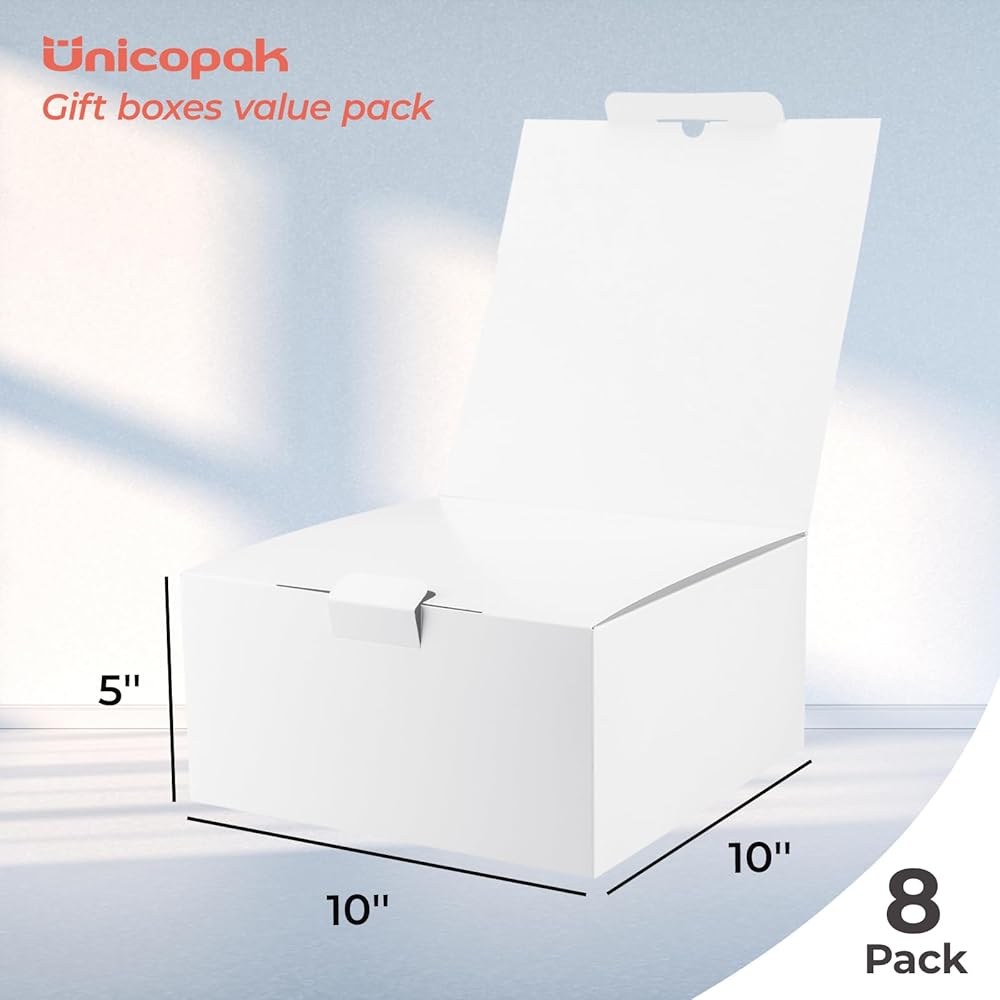 UnicoPak Gift Box. One 10x10x5 white gift box, is quite versatile and offers more space, making it suitable for a variety of moderately large gifts