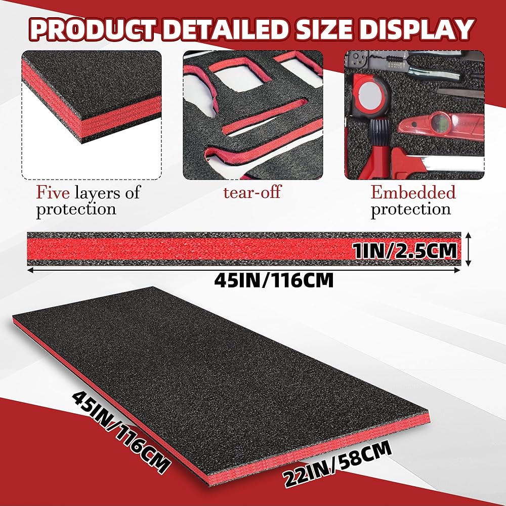 【Packaging】The tool box foam set consists of 4 foam pads measuring approximately 45x22 x1 inches /116x 58x2.5cm, the extra large size is suitable for toolbox and drawers, etc., and can be cut into any shape you want, providing plenty of cushioning and protection.