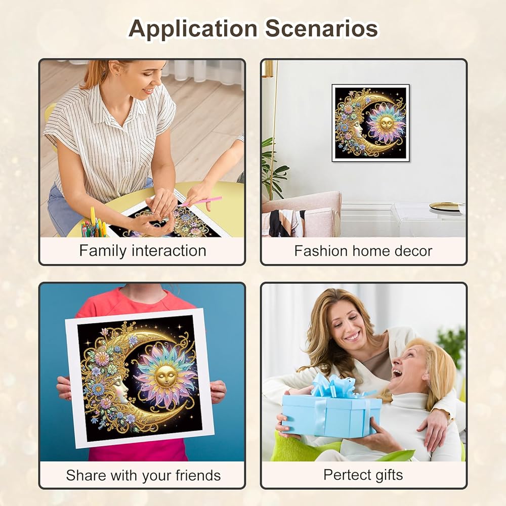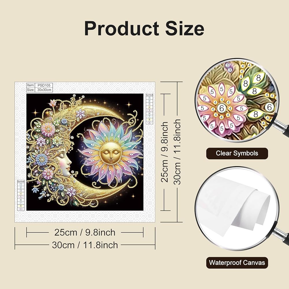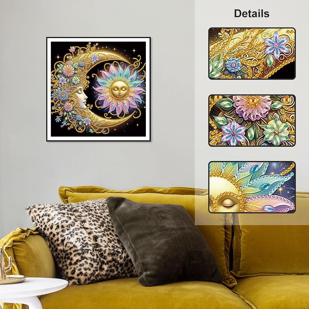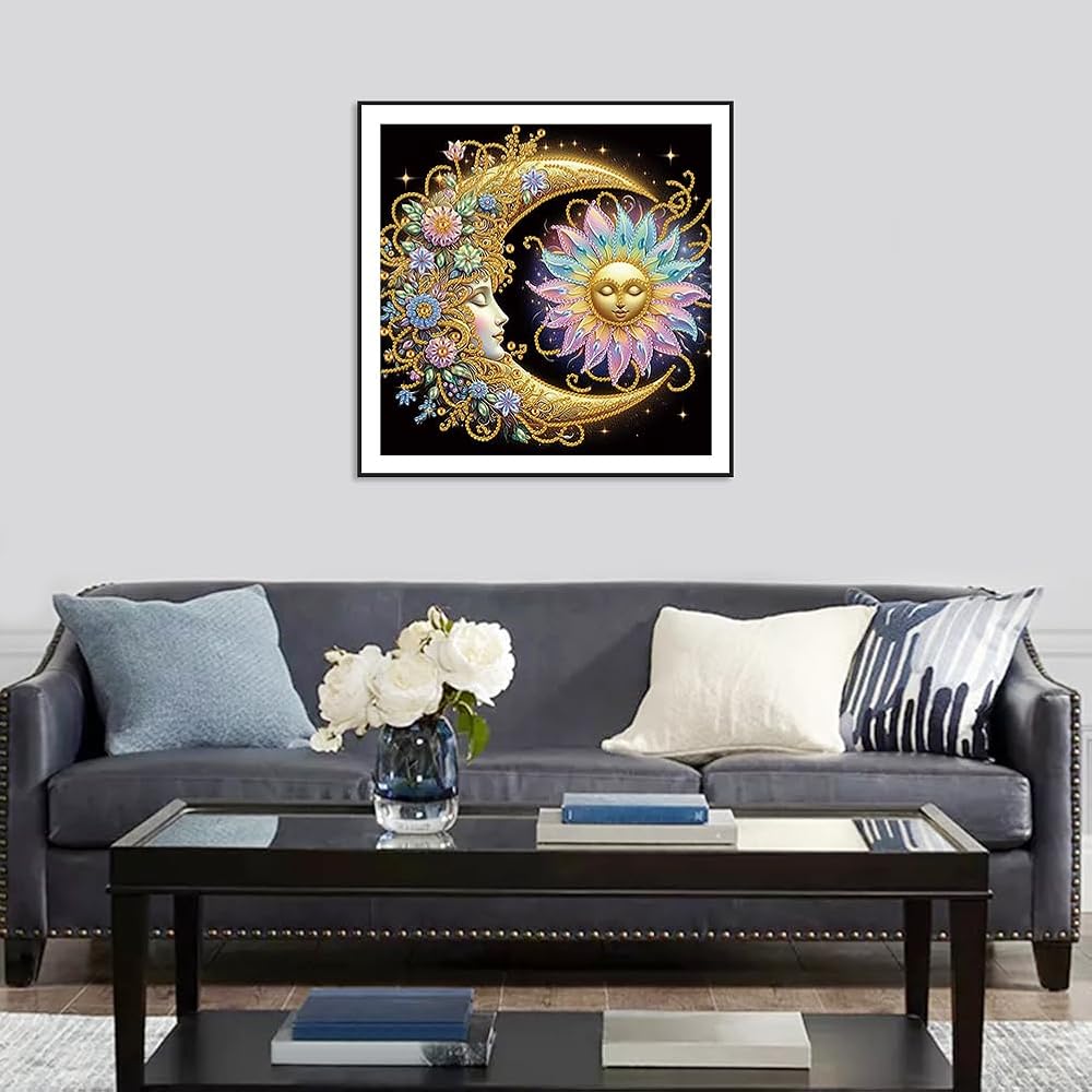 Stalente Diamond Painting Kits for Adults Sun and Moon, 5D Special Shape Diamond Art Kits for Beginners, Crystal Rhinestones Diamond Painting for Home Wall Decoration Gift 12×12inch
