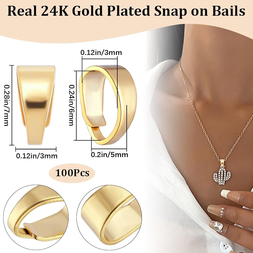 [Real 24K Gold Plated Brass]: The pinch bail connector is made of real 24k gold plated brass, smooth surface, soft metallic luster, good ductility, not easy to rust or fade, will not cause burden or discomfort to the skin, safe and comfortable to use.