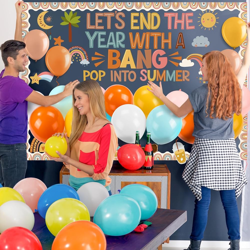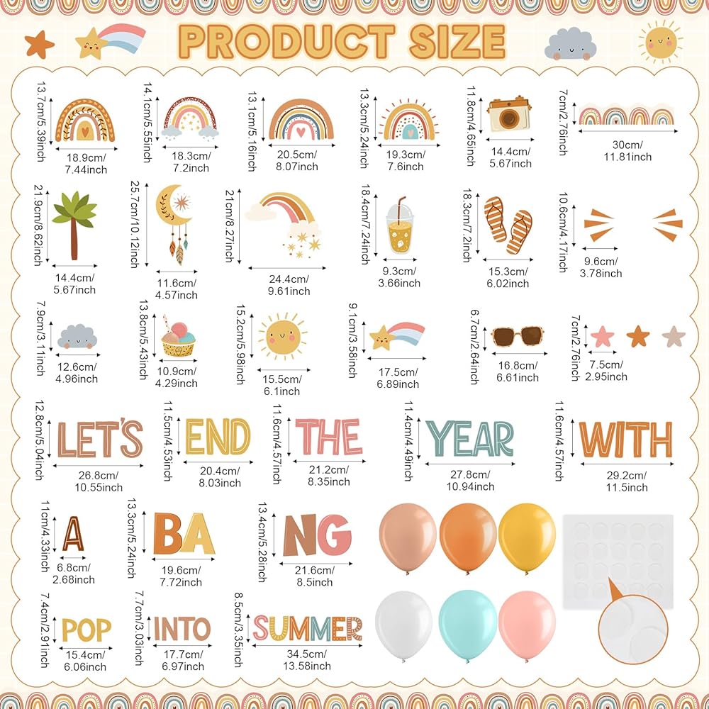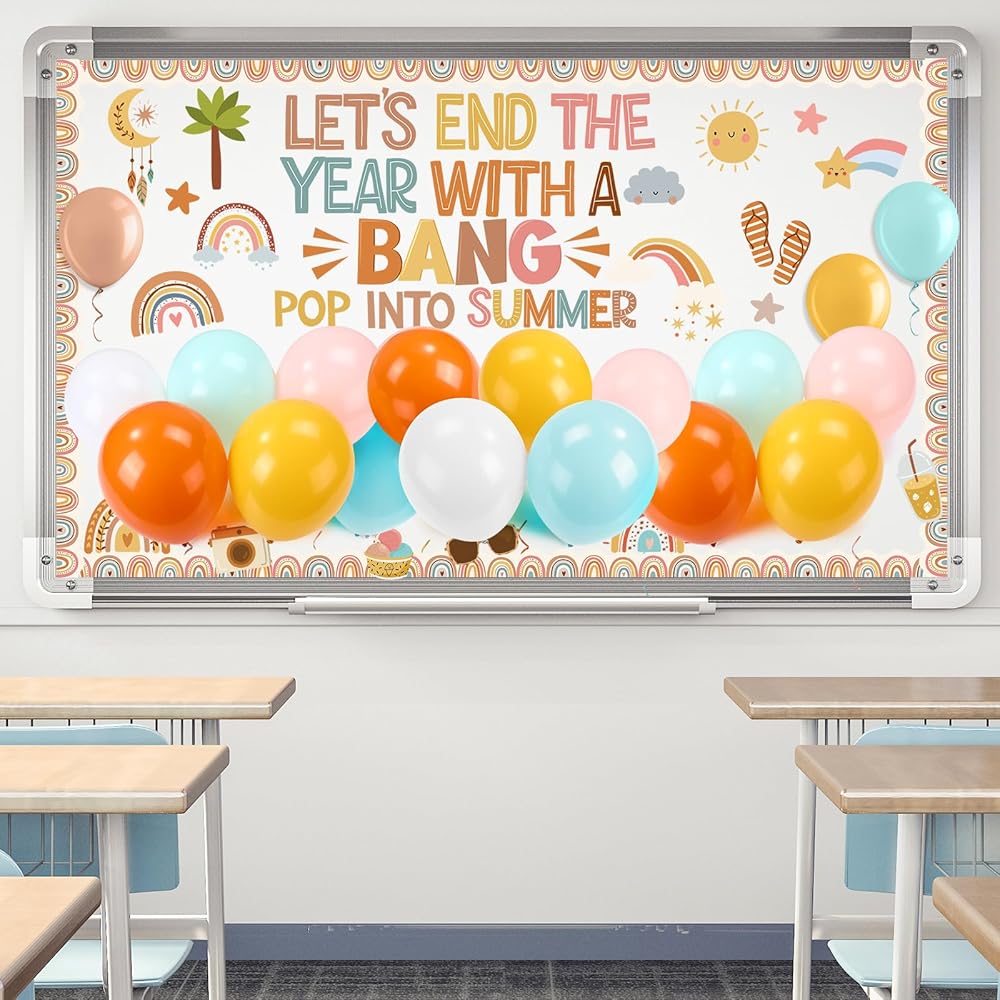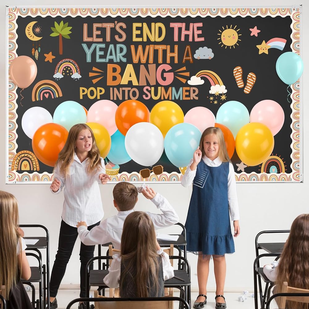 Our summer end of year bulletin boards come with adhesive dots so you can easily stick them on classroom walls, doors, blackboards and anywhere else.