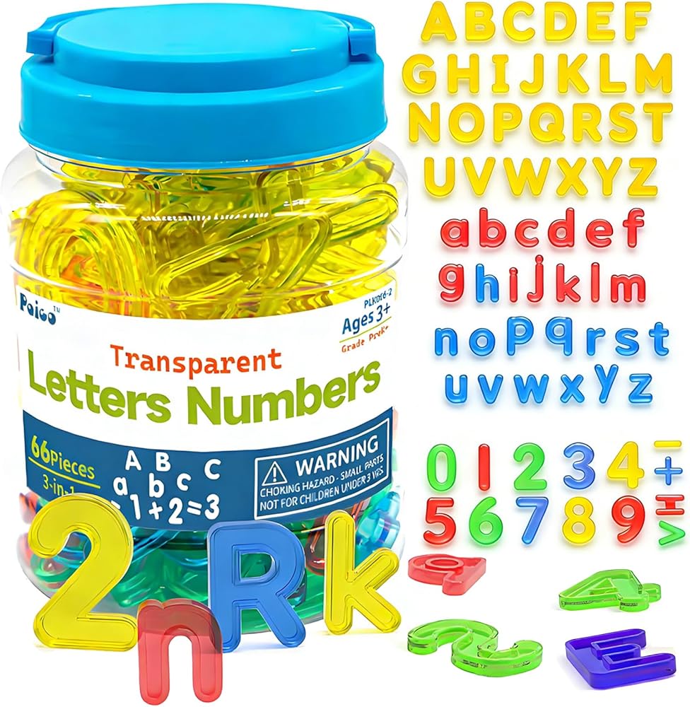 Transparent Design: Set of 66 translucent letters and numbers for enhanced learning on light tables and other surfaces.