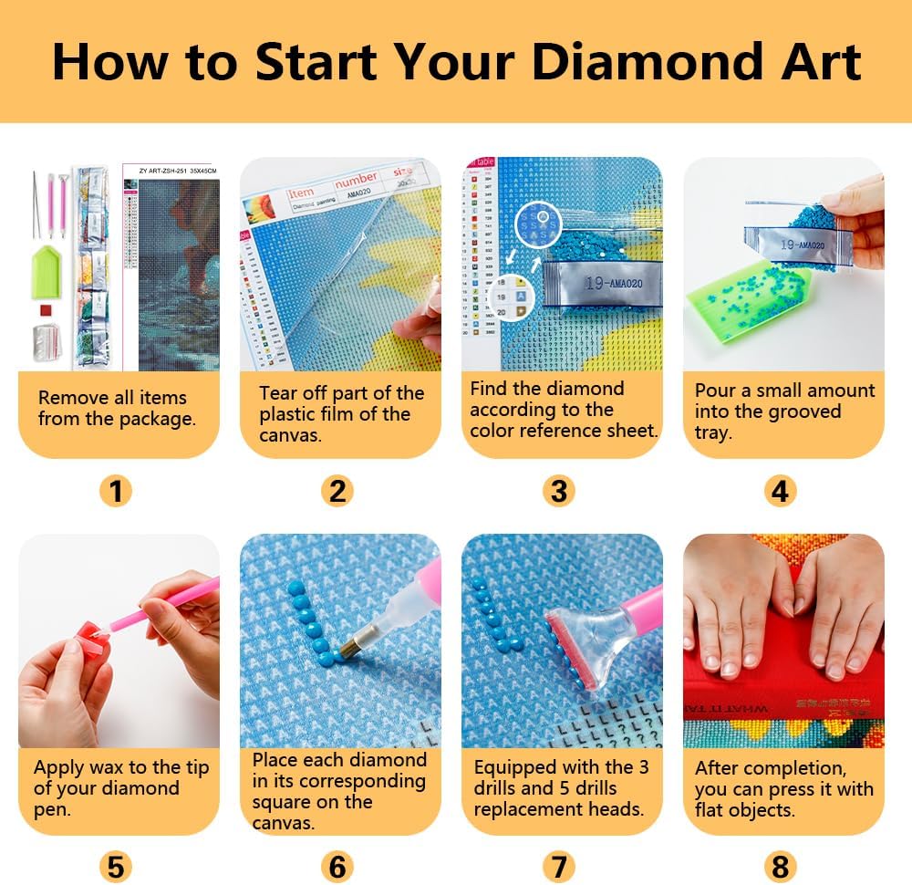Excellent Detail: The canvas for diamond painting is packaged with roll to avoid wrinkling the canvas. Self-adhesive canvas and jelly glue double-stick each diamond, making this beautiful creation timeless.