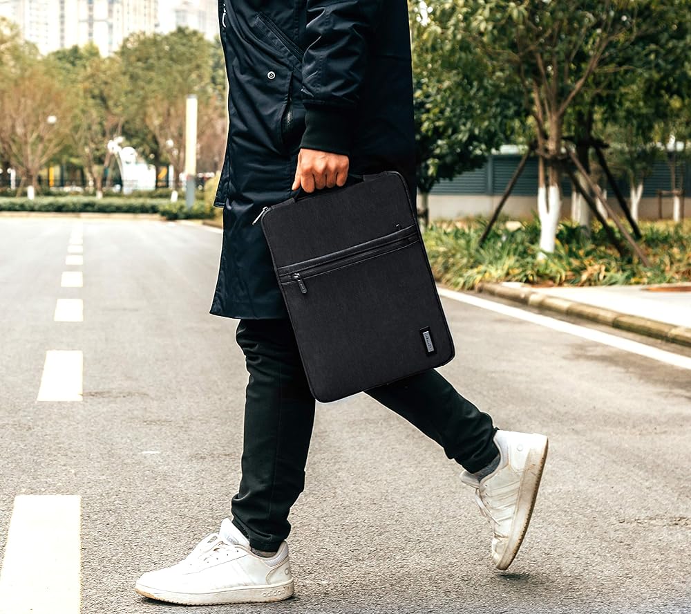 [DURABLE HANDLE & ZIPPER] Made of Eco-material can be easily put into a backpack or briefcase as an inner shell.Zippers are smooth and easy to put in equipment.Soft handle on the side of the sleeve is comfortable especially for long time carry