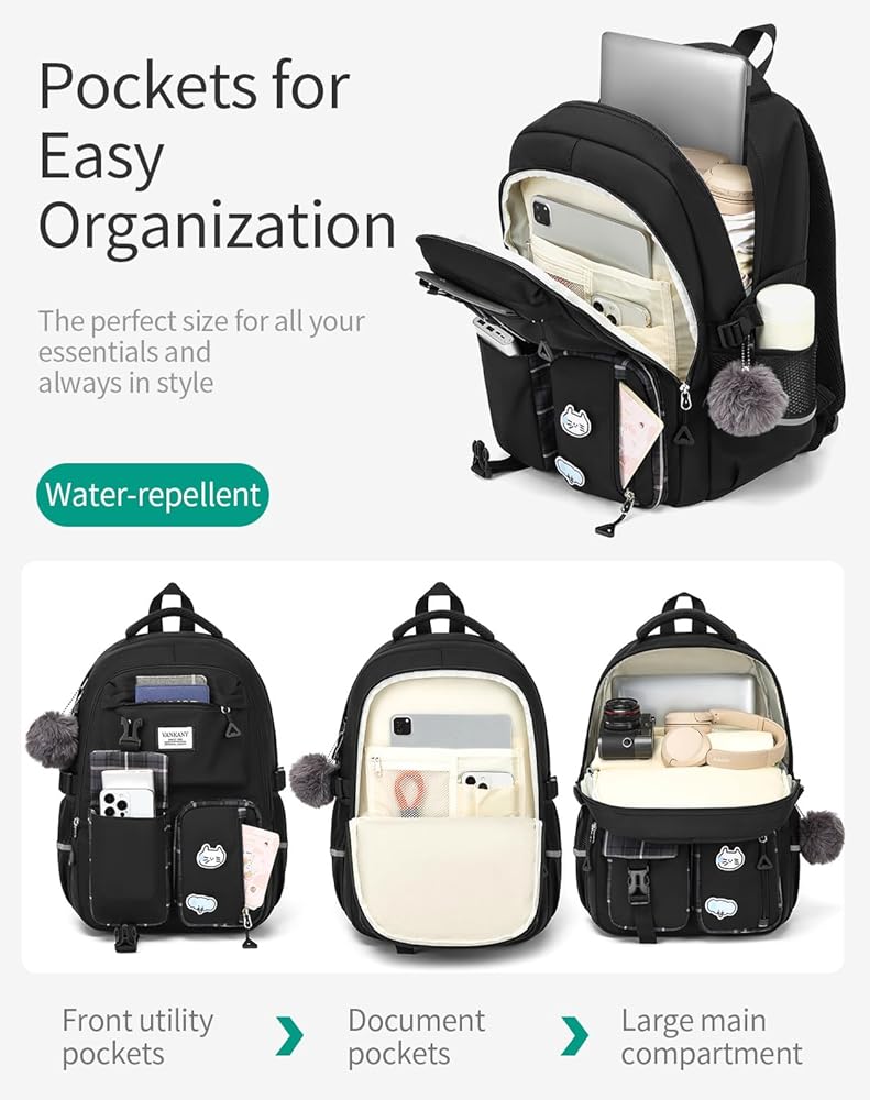 Reliable Backpack: VANKANY backpack are made with durable fabric, lining, zippers & straps in colors & designs. Our bookbags are water-repellent and easy to clean.