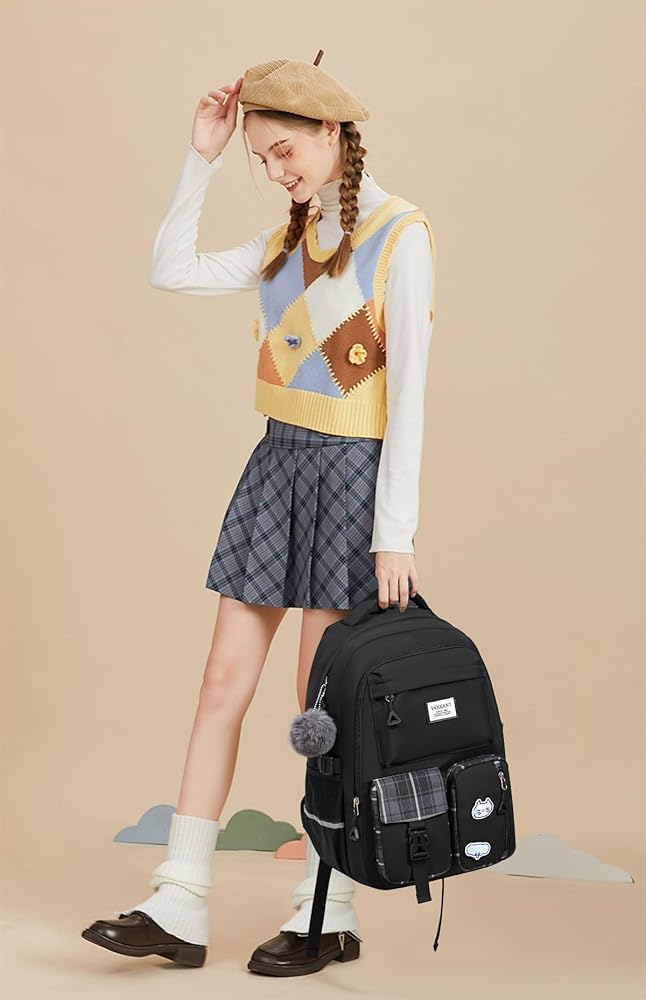 School Essentials: Featuring a practical silhouette and cute accessories that always looks amazing. Coming with furry pendants and pins. Ideal for elementary, middle, high, and college students.