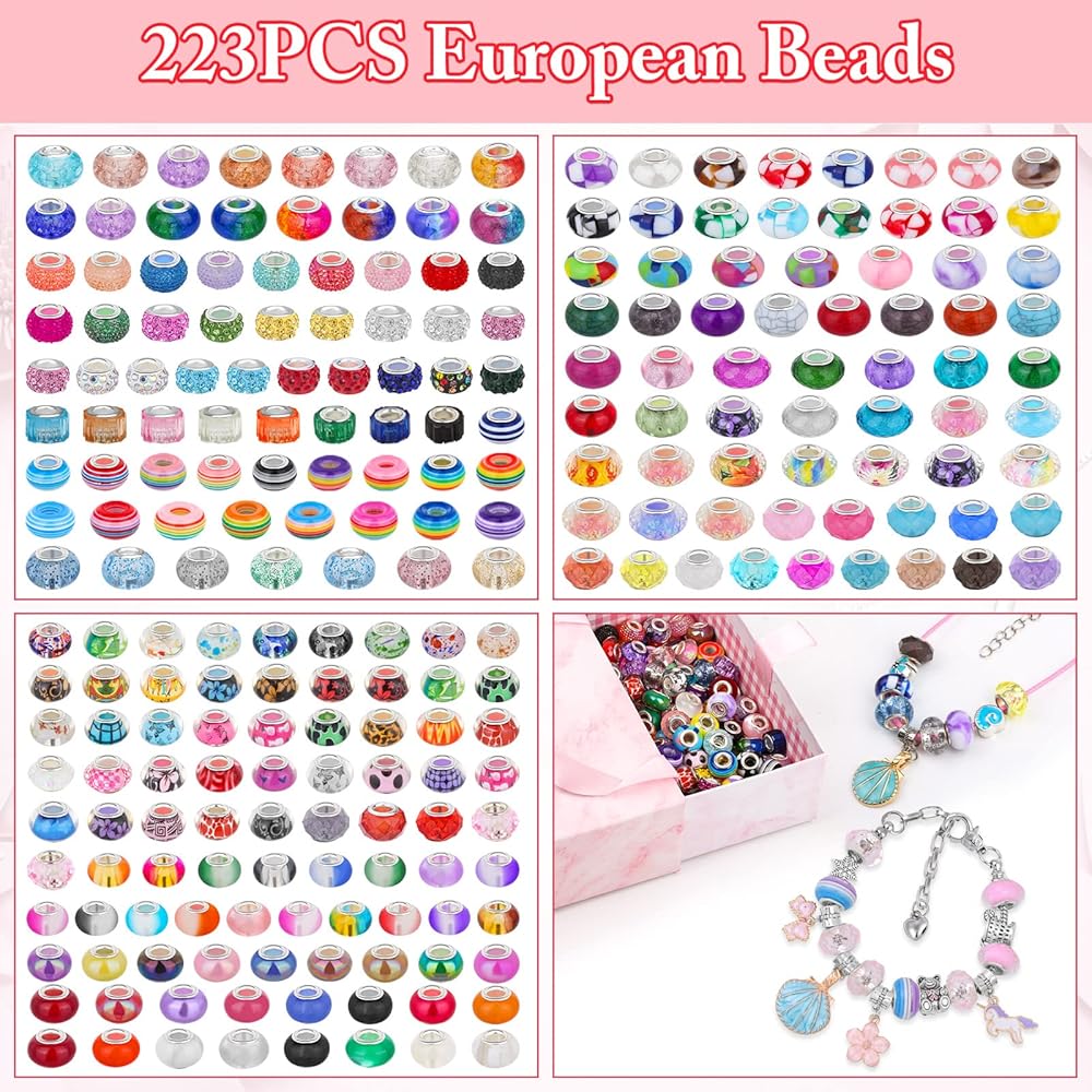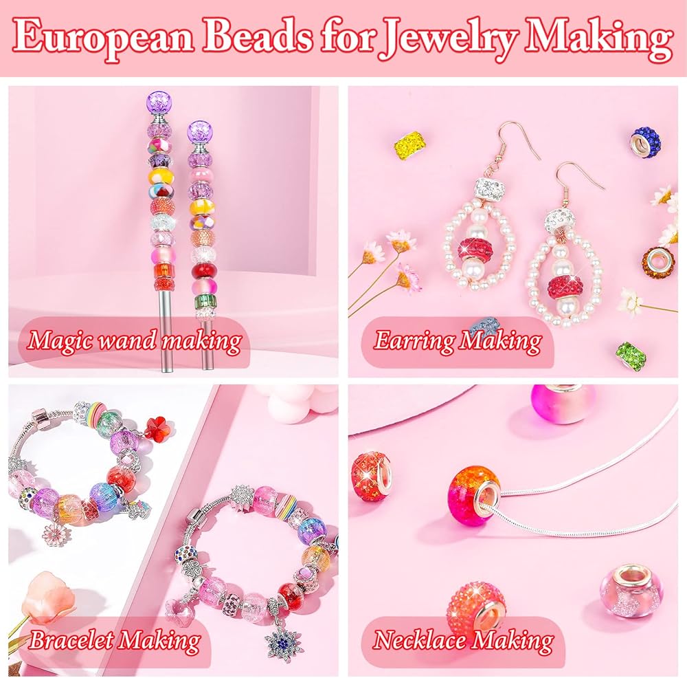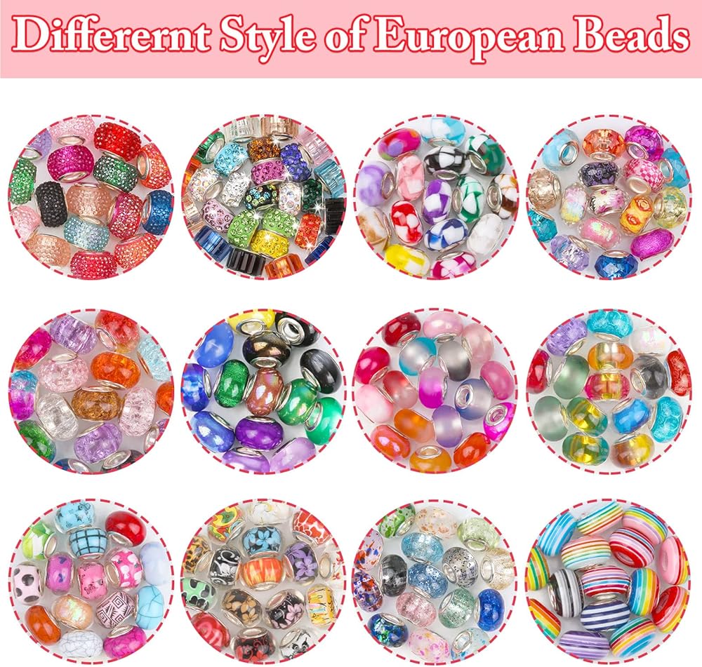 【Large Quantity & Vibrant Color】Cludoo large hole beads include 240 PCS european beads with 16 colors, and there will always be one that will impress you. With the different colors you can make different styles of bracelets