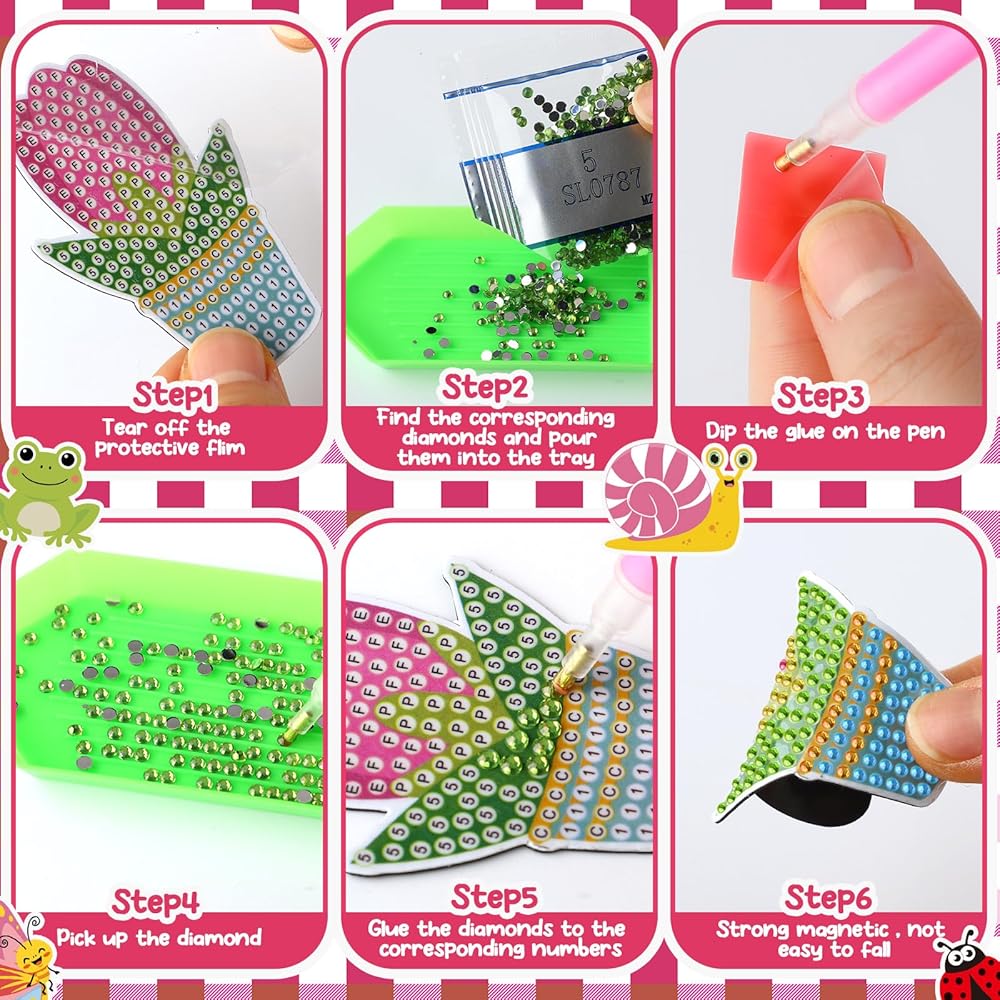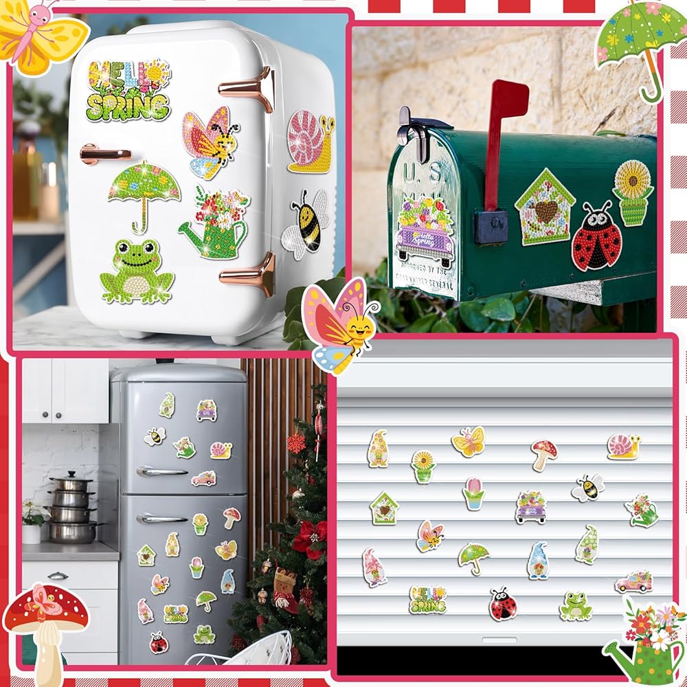 Quality Diamond Painting Refrigerator Magnets: savor the quality experience with these 20 Diamond painting refrigerator magnets made from PVC material; The bright color gives your space an invigorating vibrancy; The longevity offered by the PVC material offers prolonged service