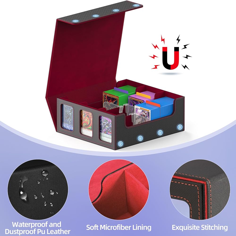 【Sturdy and Waterproof】Our MTG deck box is made of high quality material. The outer layer made of PU leather is waterproof and the soft microfiber lining protects your playing cards from scratches, creases and more. Sturdy and durable material provides perfect protection for all types of playing cards