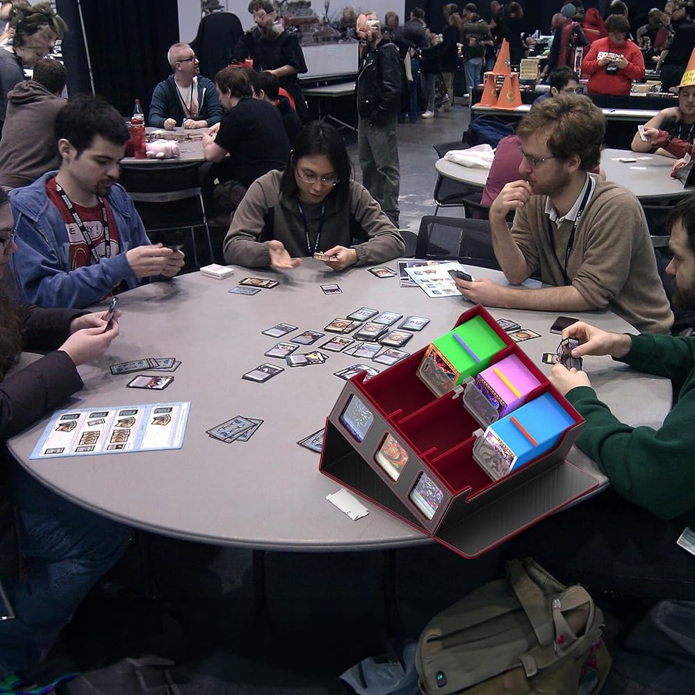 【Efficient Card Organization】The commander deck box is equipped with 18 colorful markable dividers for easy sorting of cards and accessories. It is also equipped with 3 fixing supporters to ensure that the cards remain upright and organized, helping to perfectly organize the cards. Sturdy magnetic closure design ensures that the card case stays securely closed even when tipped over, providing full protection for your cards