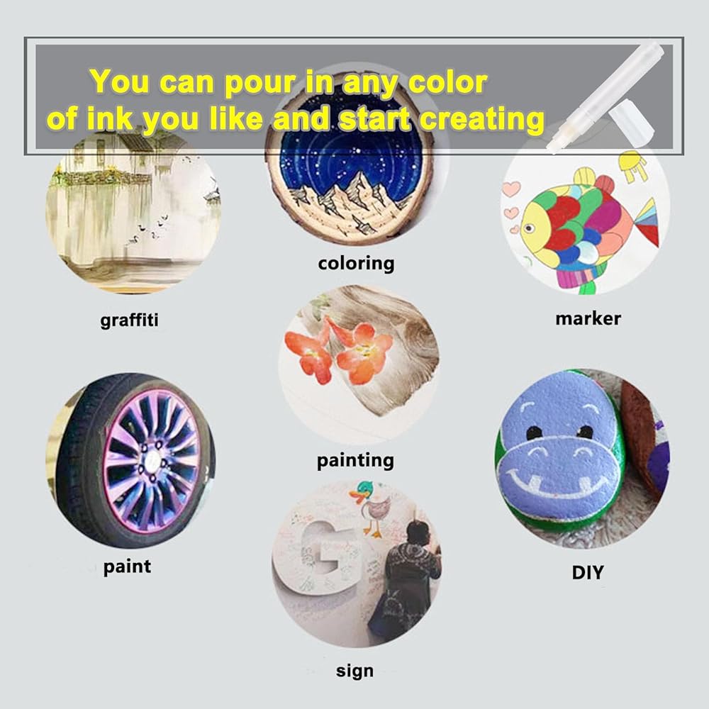 Easy To Use: Press the nib of the fillable paint markers downward to release paint. (Dilute high-concentration paint to ink consistency if needed.)