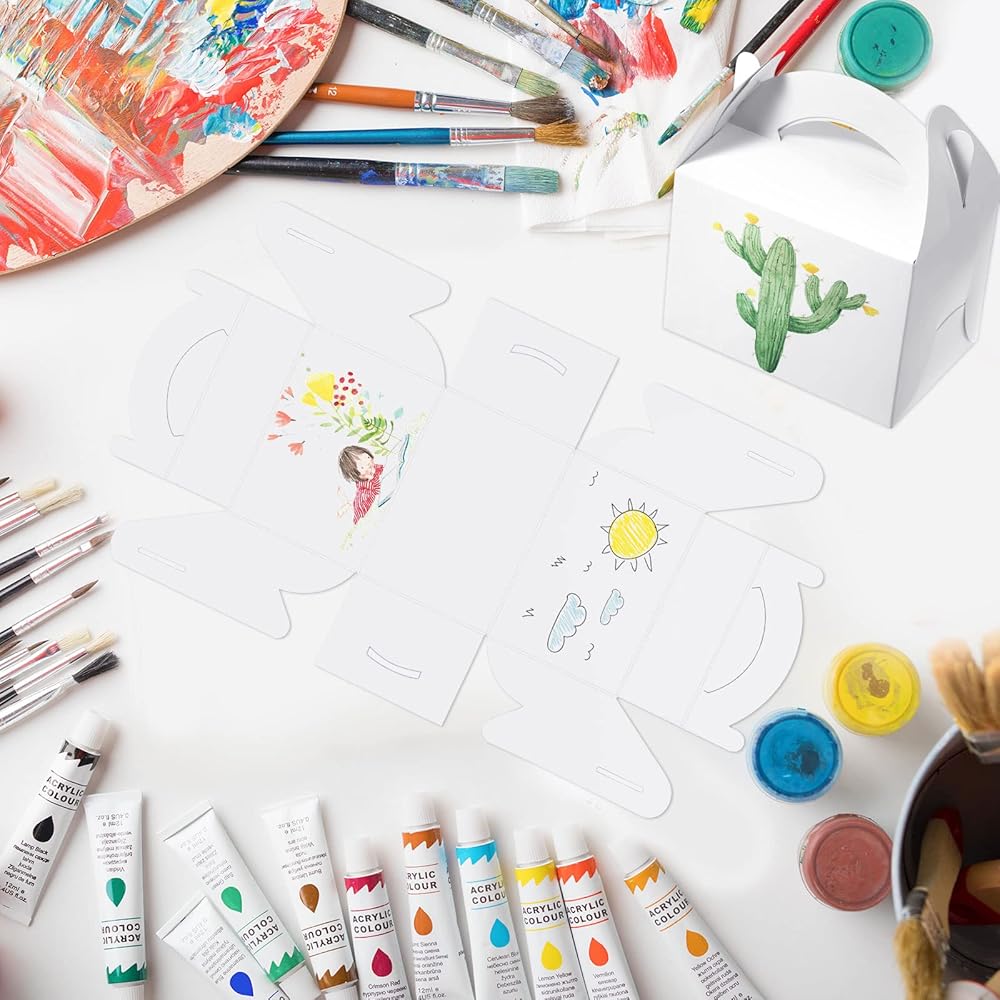• DIY your own box: you can color and design these white party favor boxes according to your own imagination and preference, such as draw some adorable patterns you like, write sweet texts, paste some cute cartoon stickers and so on; You will enjoy yourself during the process of creating your own party favor box