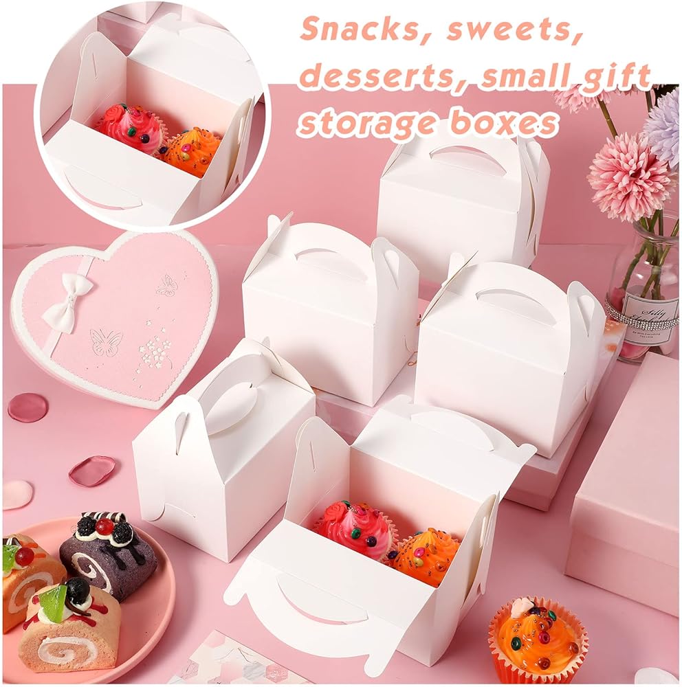 60 Pack Party Favor Treat Boxes, White Gable Gift Boxes with Handle Treat Candy Paper Box for Party Favor Small DIY Box for Wedding, Birthday, Baby Shower, 4.5 x 3.1 x 3.1 Inches