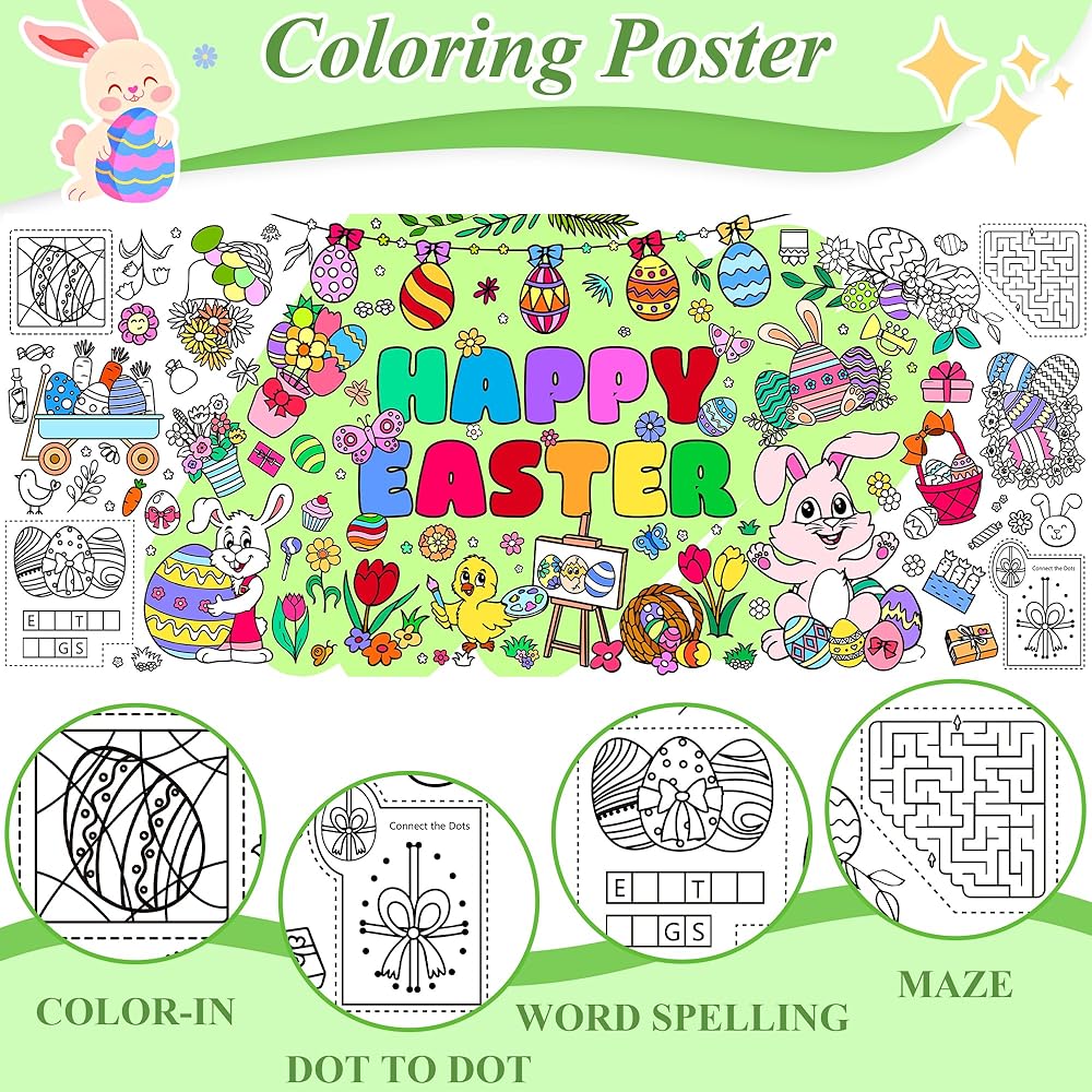 Multi purpose: The coloring poster can be used as a interesting Easter activity for kids, whether in school or as a DIY project at home. After coloring, parents or teachers can hang this large Easter coloring poster on their wall or bulletin board as a special decoration