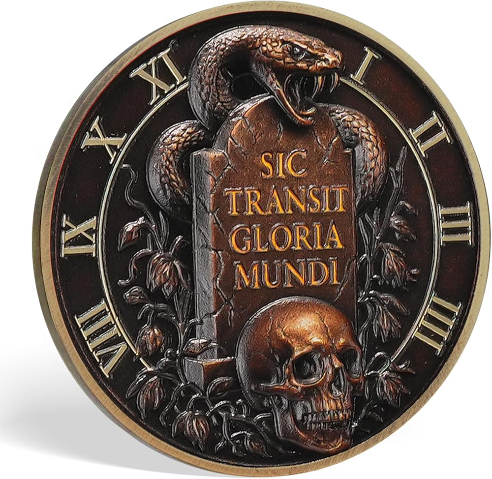 Premium quality handmade craftmanship memento mori coin to remember death and alive.This challenge coin is made of metal with high polished gold plated, could be a long lasting gift.Memento coin engraved with some Latin phrase: Memento Mori, Memento Vivere which translates to “Remember you must die, Remember to live". Death is inevitable, So seize the day. More delicate details: hourglass and time clock which represent passing of time, beautiful flowers represent short life, our time is limited in life, we need to stop step to take time to admire it, this made us understand a truth: enjoy the moment, seize the day. This unique commemorative coin remind people to understand that time is fleeting, preciousness of every day and cherish live and enjoy the present, don't worry about tomorrow. So have fun while you are here, make the most of every day you have. Personalized reminder gift to family and friend on Christmas Day, Thanksgiving Day, Mother's Day, Father's Day, Birthday, Ceremony or other special occasion.