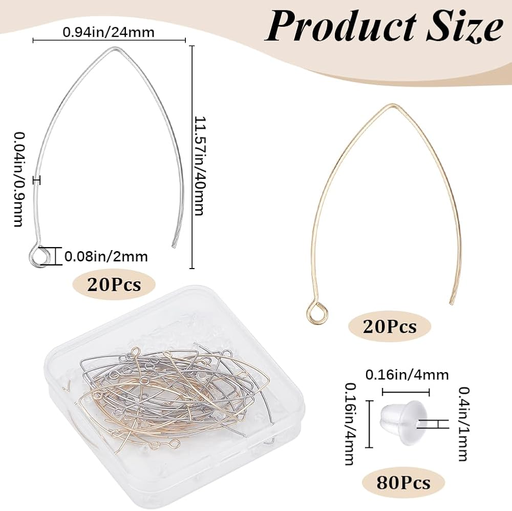 40PCS SILVER EARRING FINDINGS: You will get 40pcs drop earring wires, come with 80pcs plastic ear nuts, so you don't have to buy extra. A small hole at the bottom is easy to hang different accessories, perfect for replacing ear wires on existing earrings or for making new earrings