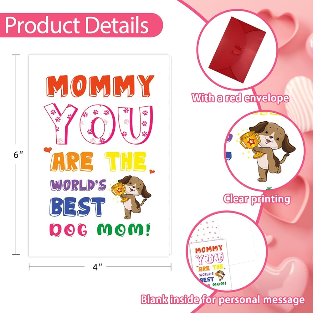 • Best Dog Mom Card with Envelope: This Gift Card for Best Dog Mom is printed on premium recycled cardstock and paired with a premium red envelopeensuring a durable and eco-friendly option.Card size About 6" x 4" inches folded.