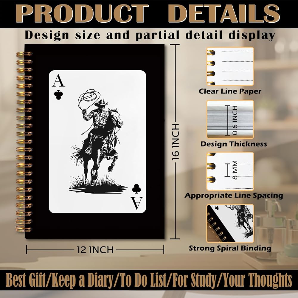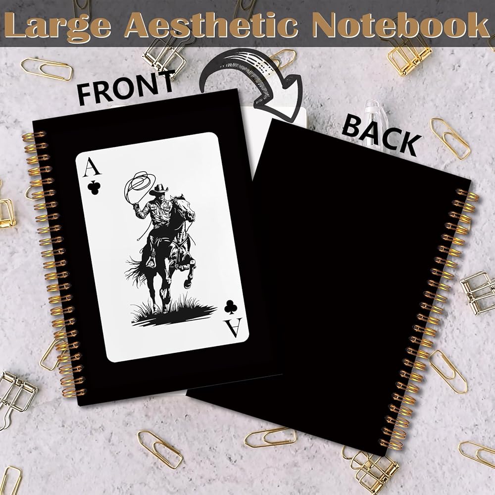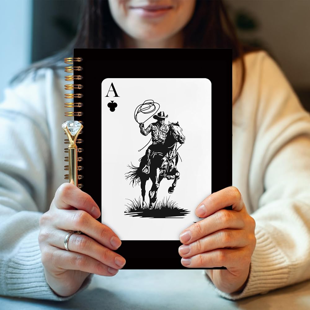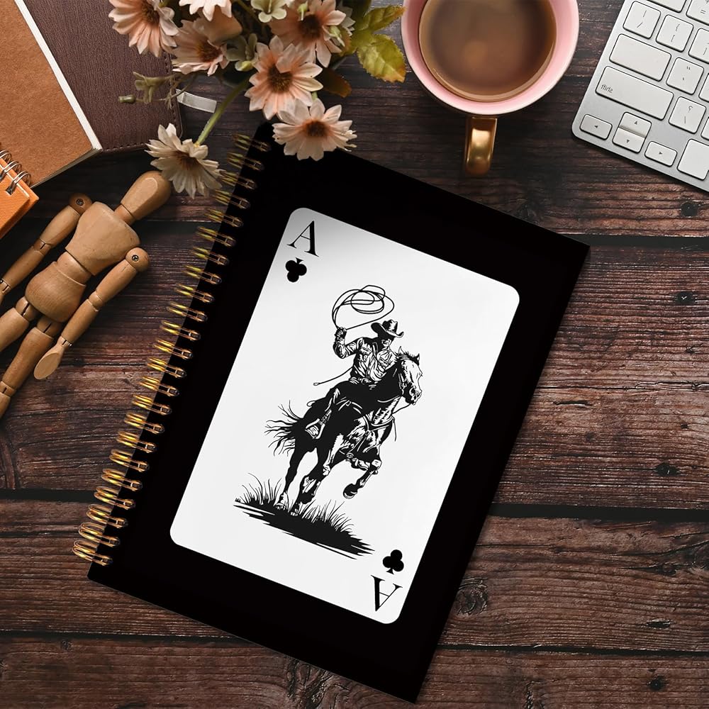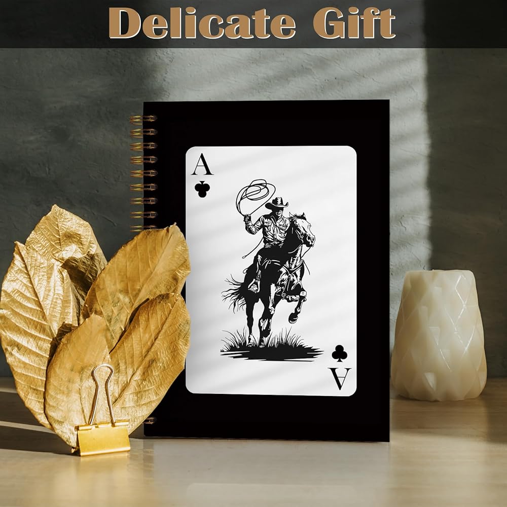 FITIE Western Cowboy Spiral Notebook 5.5x8.3, Cowboy Gifts for Men, Trendy Retro Ace Card Black Journal, Black Western Office Supplies, Black Notebooks for Note Taking