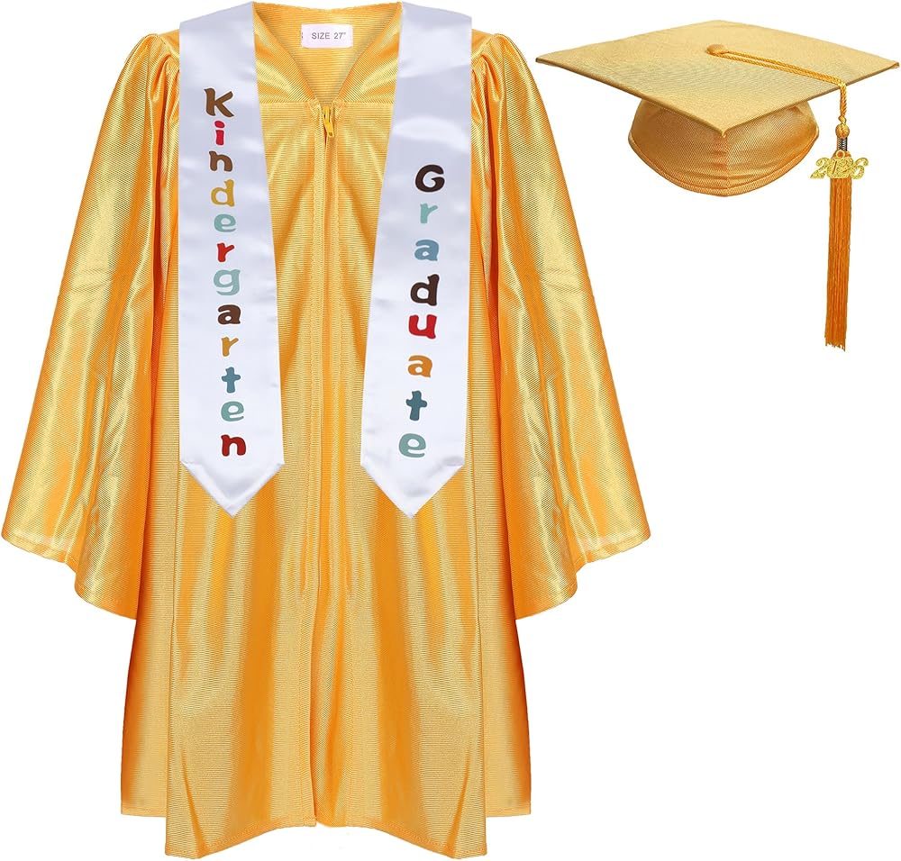 This Kindergarten Graduation Cap and Gown Stole Set is Ideal Keepsake for Marking Every Milestones, Kindergarten, Elementary. It Makes an Awesome Companion for Kids! Wearing this Cap and Gown set, Children will Definitely Feel Proud and Happy!