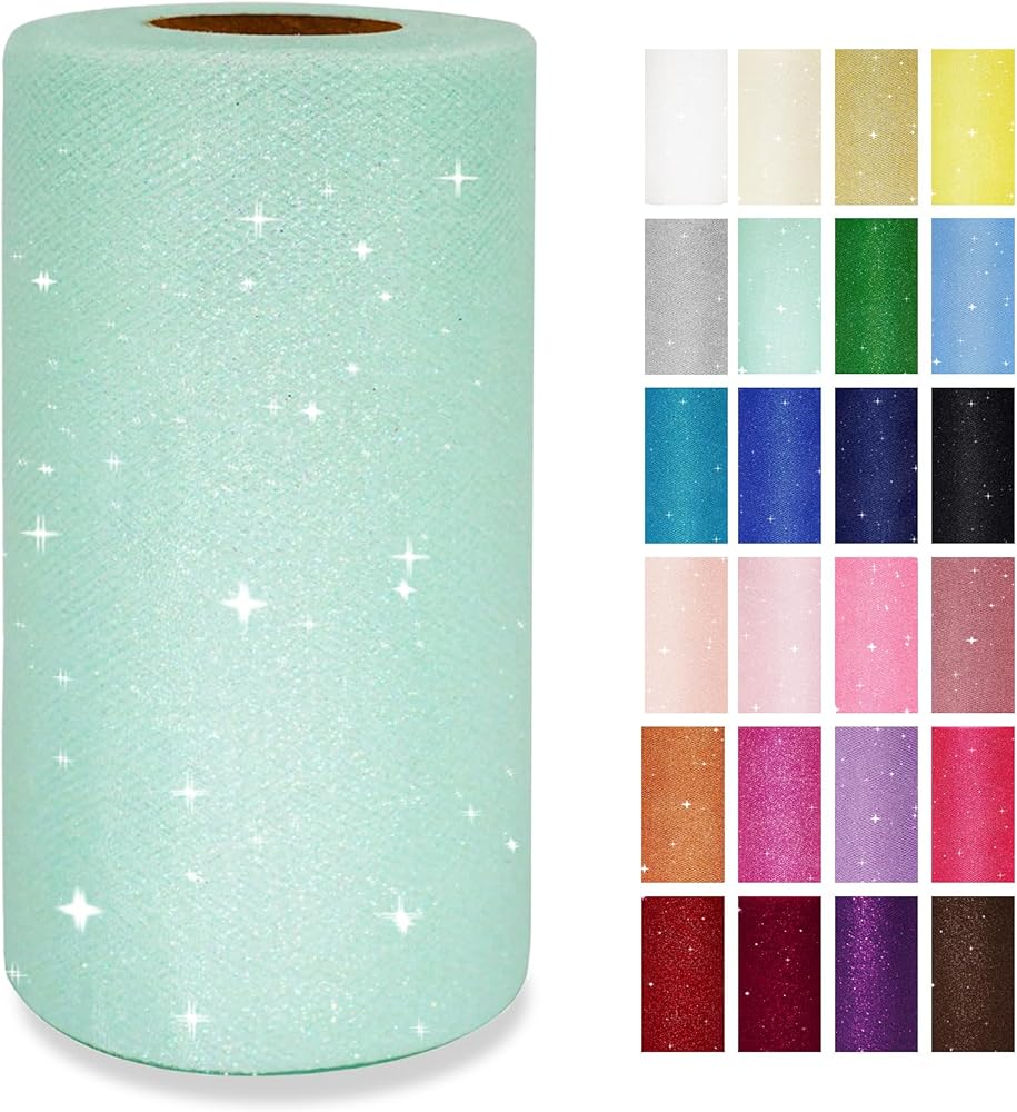 The stunning gold glitter tulle. Measuring 6 inches in width and 50 yards sizes, Whenever it comes to adding extra fun and shine to your crafts and decor, you can never go wrong with glitter tulle roll