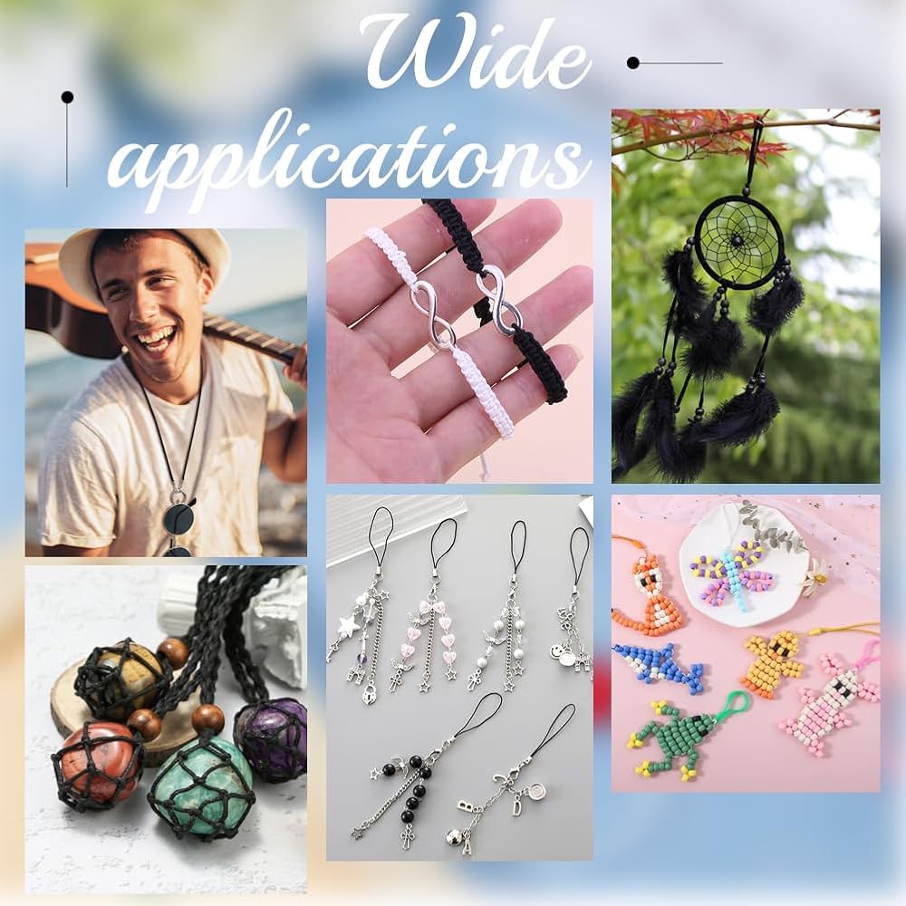 [Thoughtful Gift]: Black nylon cord is a thoughtful gift for diy enthusiasts and jewelry makers, can inspire creativity in bracelet making, necklace crafting, and bead weaving. Bring joy to your friends or family and elevate the crafting experience with premium nylon cord!