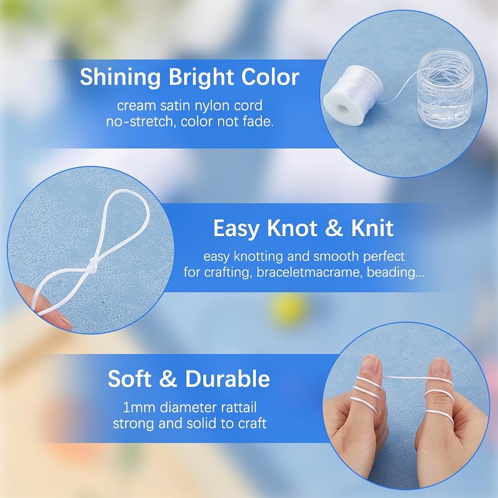 [Easy to Store and Use]: Nylon cord beading satin string through beads without additional tools, seamless creations, perfect for crafting with friends. Neatly wrapped on a spool, facilitating easy storage and minimizing tangles, convenient for you to store and reuse the nylon cord.
