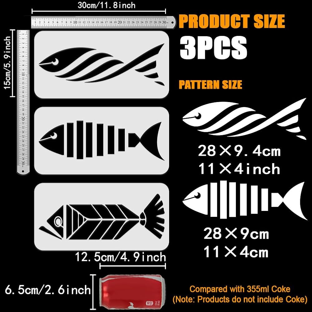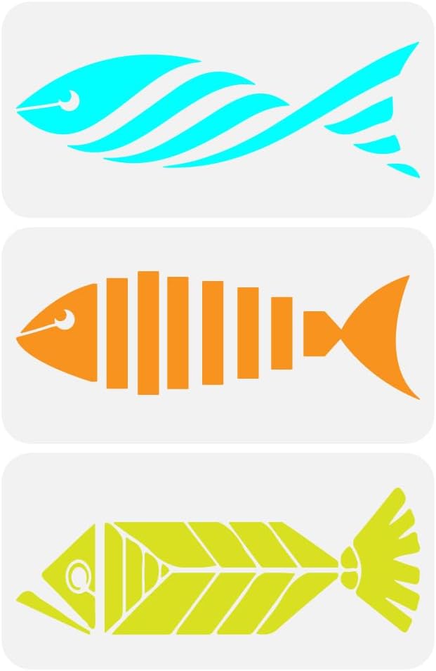 FINGERINSPIRE 3 Pcs Geometric Fish Painting Stencil 11.8x5.9inch Reusable Pinstripe Fish Drawing Template DIY Art Summer Sea Theme Home Decoration Stencil for Painting on Wood Wall Fabric Furniture