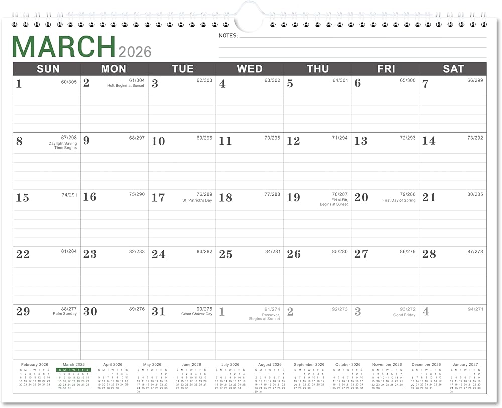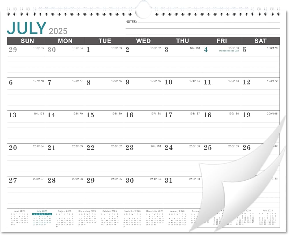 PREMIUM PAPER - Extra thick premium paper of calendar 2025-2026 effectively prevents ink through and feathering. Bright white and paper creates clean writing space, making writing no longer in a mess. There's notes section on the top right that you can write down your priorites of this month.