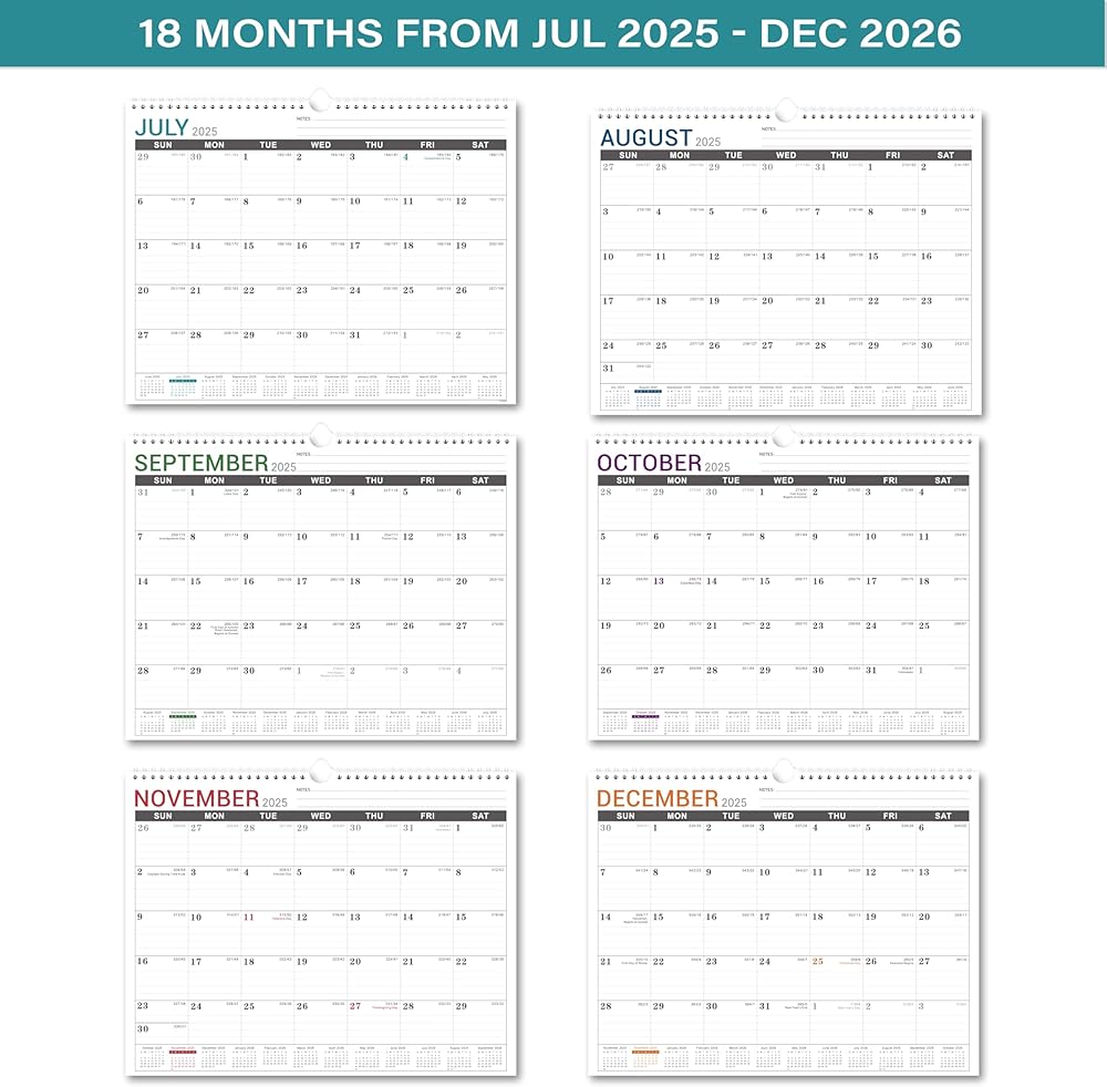 2025-2026 Wall Calendar - This stylish wall calendar 2025-2026 start from July 2025 to December 2026 which includes 18 months planning pages for your long term record. Each monthly page size is 14.5'' x 11.5'' which is a suitable size for different occasion.