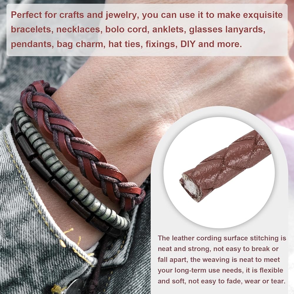 Braided Leather Cord is in size of: Diameter: 6mm/0.24inch, Length: 3m/3.3 Yards, Package List: 6pcs x braided leather rope