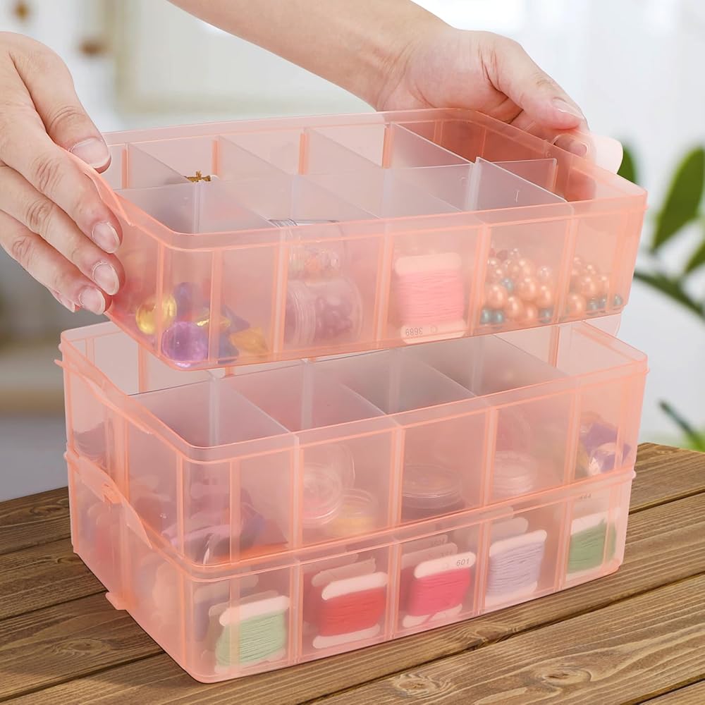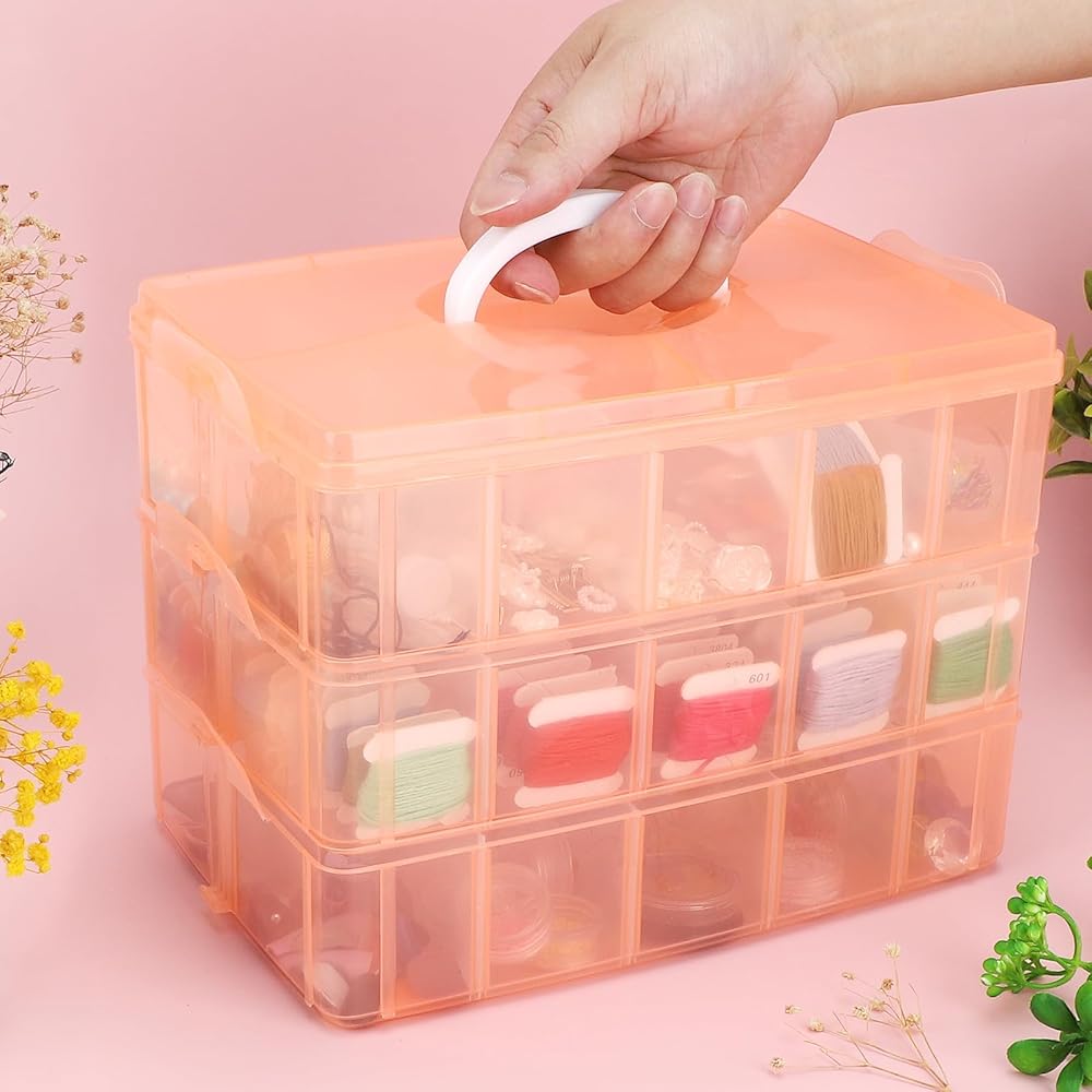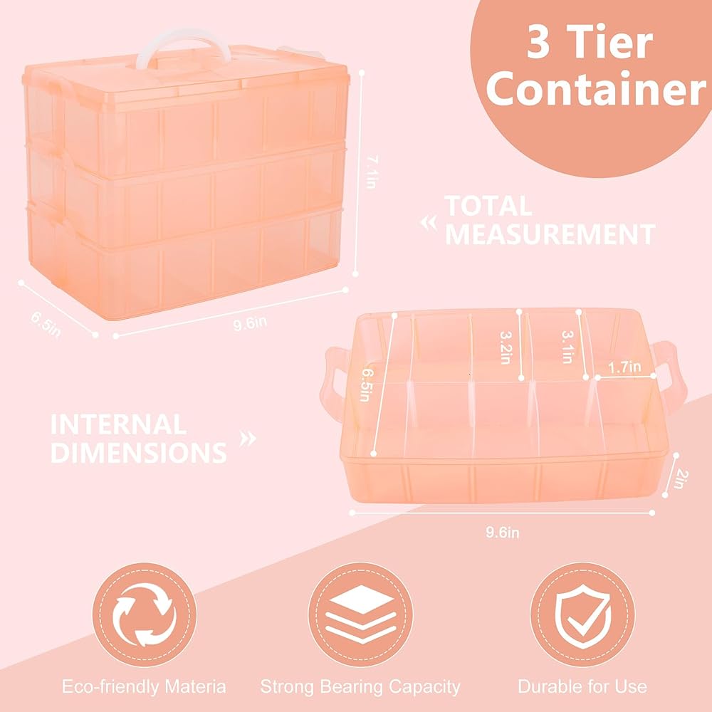 3 Tier Separate Stackable Box --- The bead organizer has 3 layers individually Stackable Storage Container, 10 grids per layer, totally 30 adjustable compartments, saving space.Snap and lock design allows you to add-on additional tiers as needed.