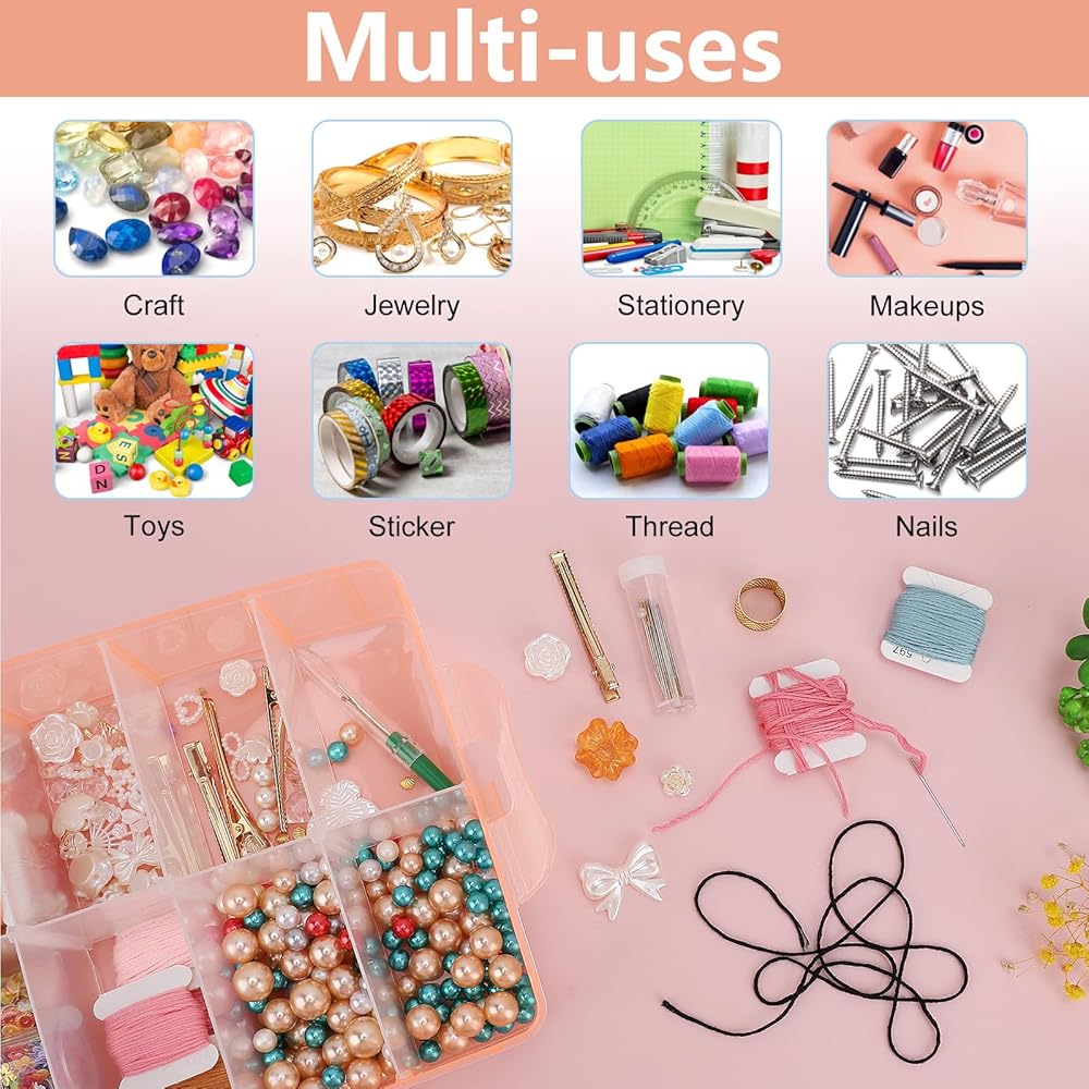 Wide Application --- The craft organizers and storage is great for storing & displaying small items, such as jewelry, charms, beads, gemstones, stone collection, stickers, bobbins, sewing threads, building blocks, spring bar, false nail, nail art accessory, glitters, small hardware like screws, bolts & nuts, office supplies, fishing lures crank baits hooks, etc.