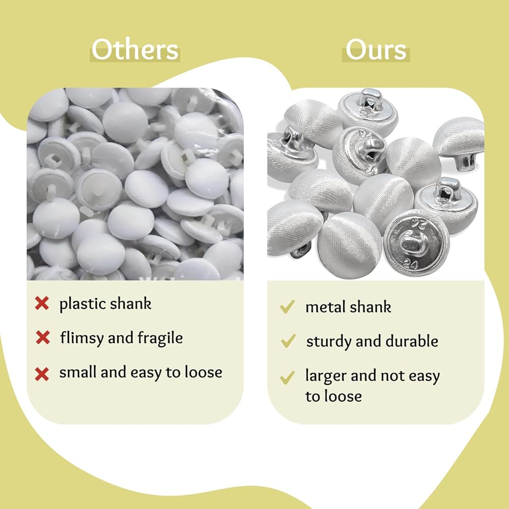 Reliable Button Replacement for Formalwear – These replacement buttons are excellent for tuxedos, wedding dresses, or blouses. Their metal shank ensures secure attachment and their satin finish adds sophistication.