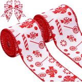 Candy Design: Christmas wired ribbon has a delicate candy pattern, different shapes, which is fresh and lovely, and contains wire edges that make it easy to hold the shape when you use it, you can use them as Christmas decorations
