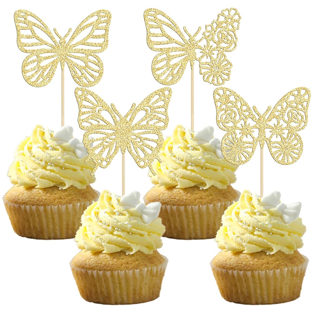 🦋These glitter Double Layer Gold Yellow Butterfly Cupcake Toppers are so cute and good for butterfly theme party, baby shower party, kids birthday party cake decoration. They can make your cupcake more attractive and bring the fun to your party. You can also apply them for ice cream, fruits, cookies and other desserts.