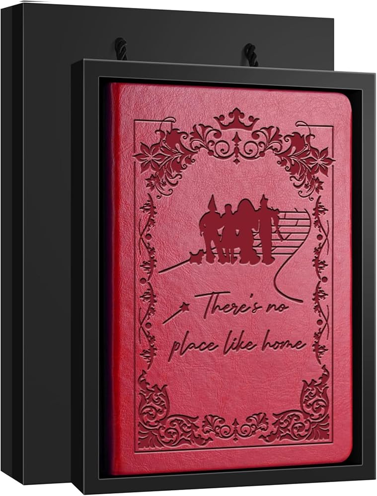 WHLBHG Movie Lover Gift Fairy Tale Leather Journal There's No Place Like Home Gift for Movie Lovers Wizard Inspirational Gift Dorothy Notebook (Red-no place like home)