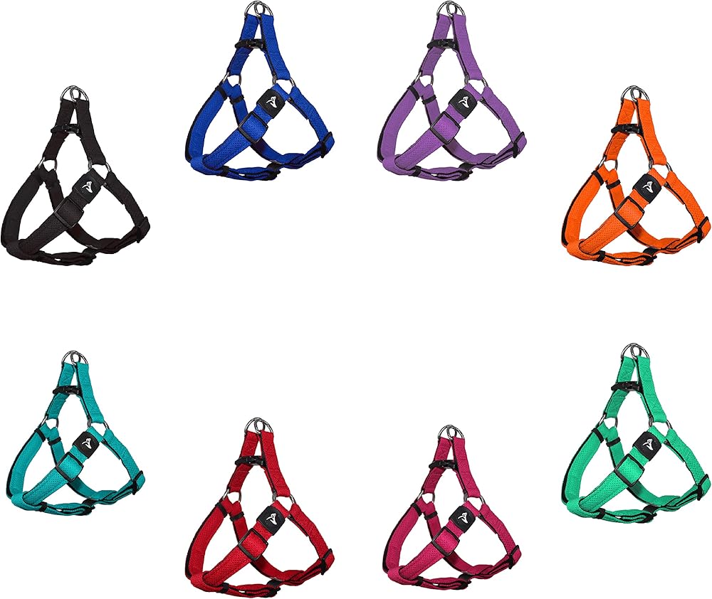 Kruz PET Step In Dog HarnessTreat your dog to the unique designs of the Kruz PET Step-In Mesh Dog Harnesses. An adjustable dog walking harness designed to provide an ultra comfortable fit to your dog with less pressure around the neck than classic collars. This no pull dog body harness distributes weight evenly through the chest and shoulders when your dog pulls while walking. Perfect for easier training and outdoor activities. The no pull dog body harness is composed of hi-density, dual layered air mesh fabric for higher tensile strength. Mesh harnesses are soft, lightweight and breathable, superior in comfort as compared to nylon and polyester fabrics. A puffy padded feel to the comfy harness adds to your dog's comfort. This dog chest harness is long lasting and fray resistant. The best adjustable harness to walk your dog or train your puppy with comfort and ease. Our cute pet harnesses come in a wide range of bright solid colors that are easy to see at all times. Perfect for dogs of all shapes, breed, and sizes.Size: M: 1 x 21-30", L: 1.25 x 26-39", XL: 1.5 x 30-46"Design Features:High quality, thick, dense air meshDual layered mesh for higher tensile strengthTri-glide for easy size adjustment Heavy duty, sturdy plastic bucklePuffy padded feel for added comfort