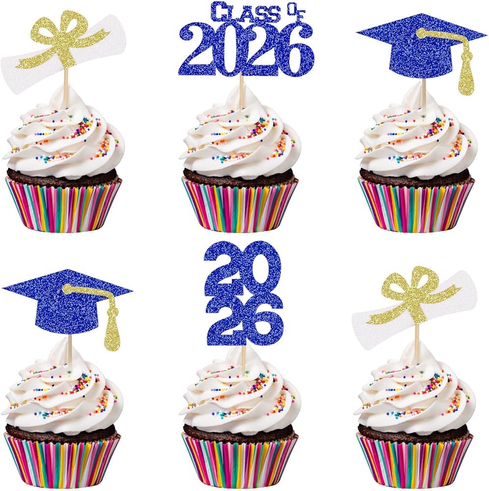 🎓🎓【Perfect Size】Made of single-sided cardboard and bamboo toothpicks.The cupcake topper size approx is 1.8 x 1.4 inches(W x H).These adorable cupcake toppers are perfect for your 2025 graduation celebration.