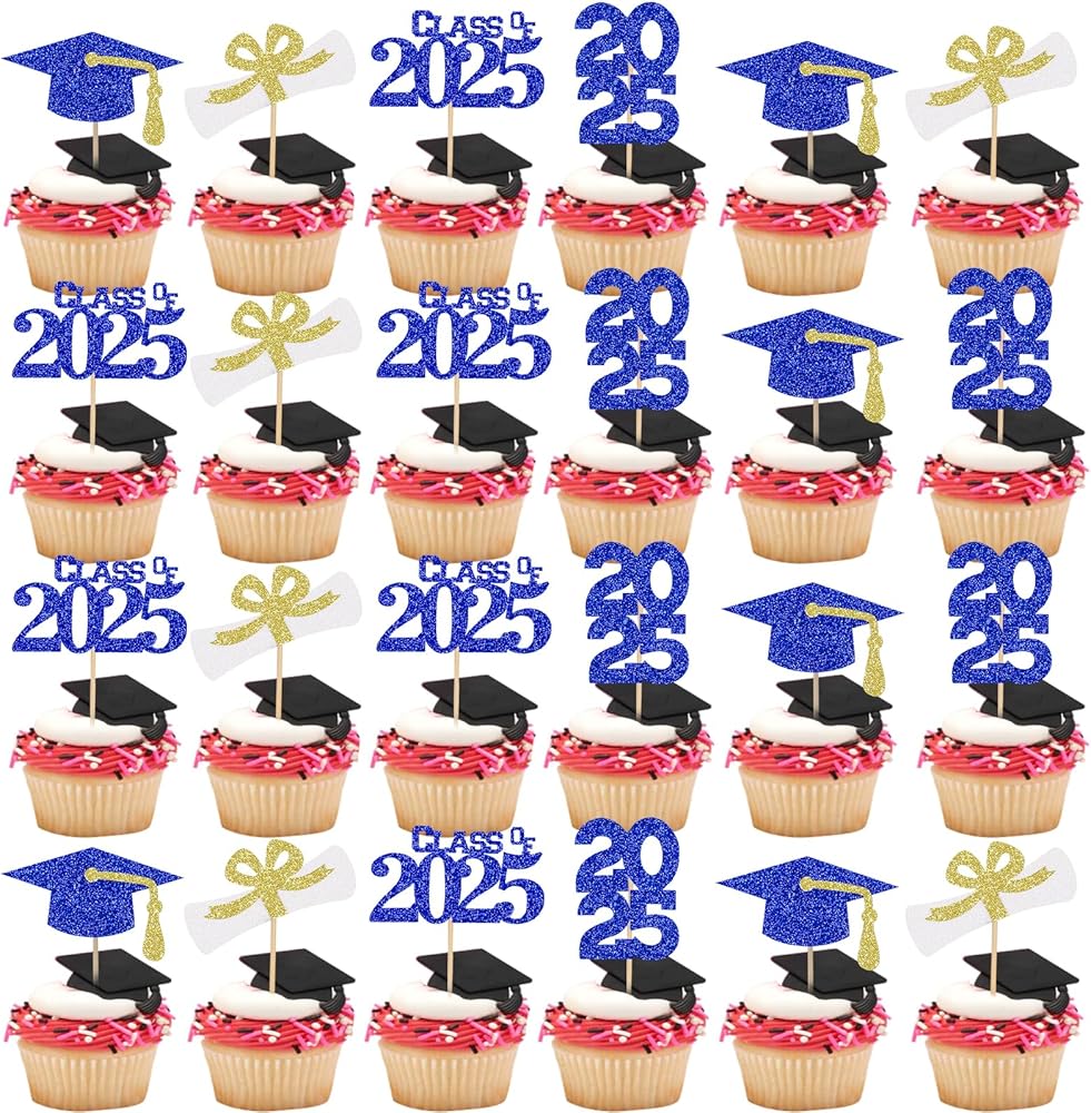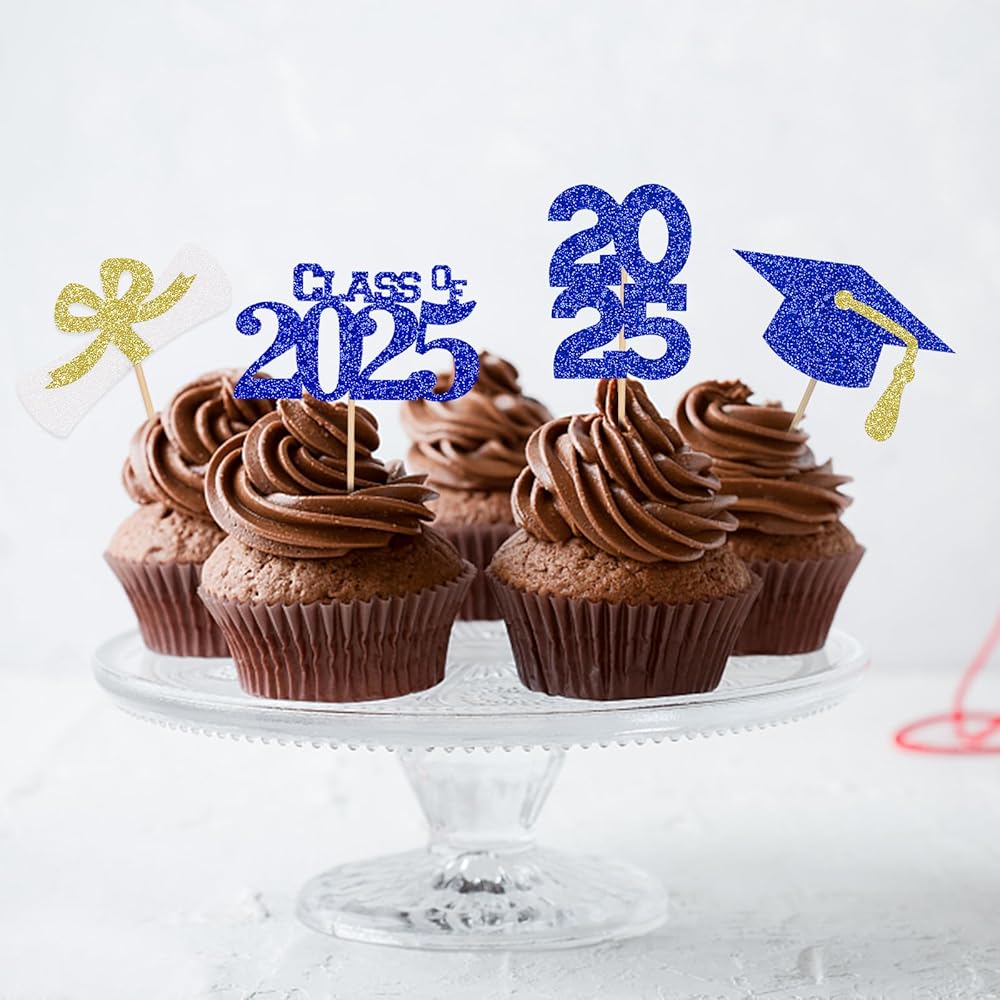 🎓🎓【2025 Graduation Cupcake Decorations】No assembly required, you can easily dress up your party food table, put them into cookies, fruit pieces, desserts, appetizers and so much more.They will add a classy touch to your 2025 graduation celebration party.