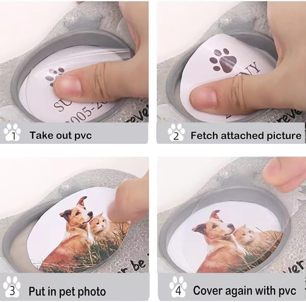 Pet Memorial Stones:Pet memorial plaques is specially customized to commemorate your beloved pet.Made of resin material and has a sturdy and durable texture.Photos of pets that can be placed anywhere in the home can become permanent mementos at home or in the office