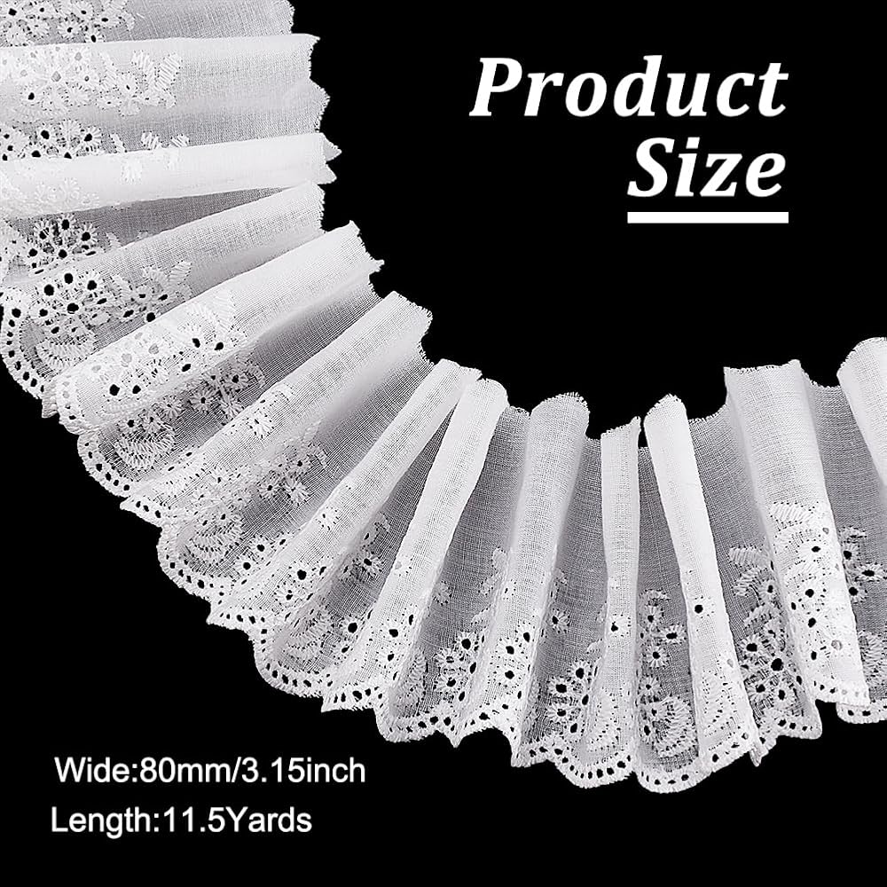 Pleated Design:Our ruffle lace features a vintage white color and style,with delicate lace edges and ribbon accents.The classic and retro design adds a touch of sophistication to your crafts and decorations,perfectly meeting your various artistic needs.